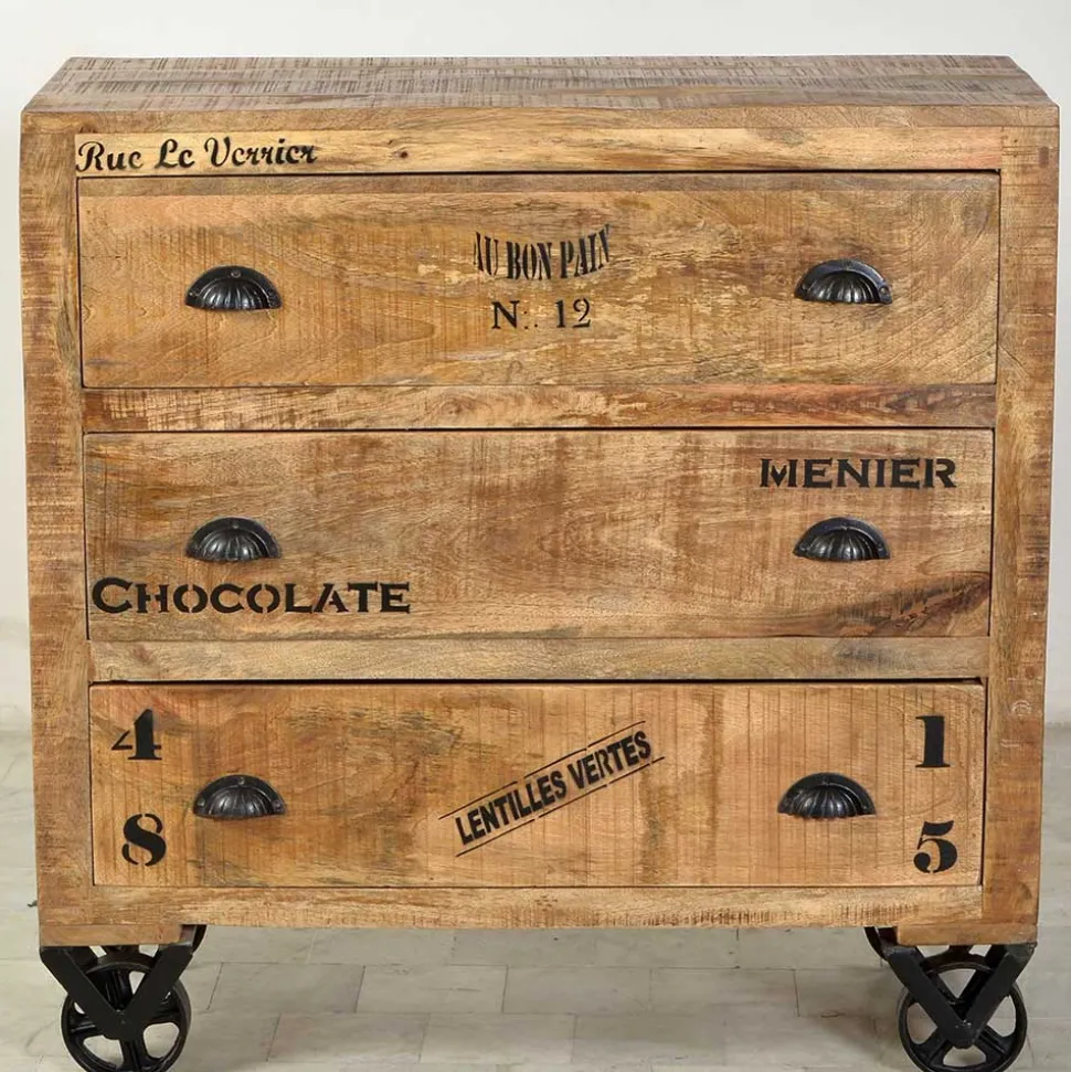Freuen Sie sich auf ein Stück Handwerkskunst, das Ihre vier Wände in eine stilvolle Erlebniswelt verwandelt. Die Kommode „Indri“ spiegelt mit ihrem Industry und Loft Stil urbanes Flair wider, das an geräumige Fabrikhallen und künstlerische Ateliers erinnert. Dieser Stil ist geprägt von einer Kombination aus Rohmaterialien und minimalistischem Design, was in der „Indri“ Kommode durch die Verwendung von massivem Mangobaumholz und einem rauen, aber schicken Antik Finish zum Ausdruck kommt.