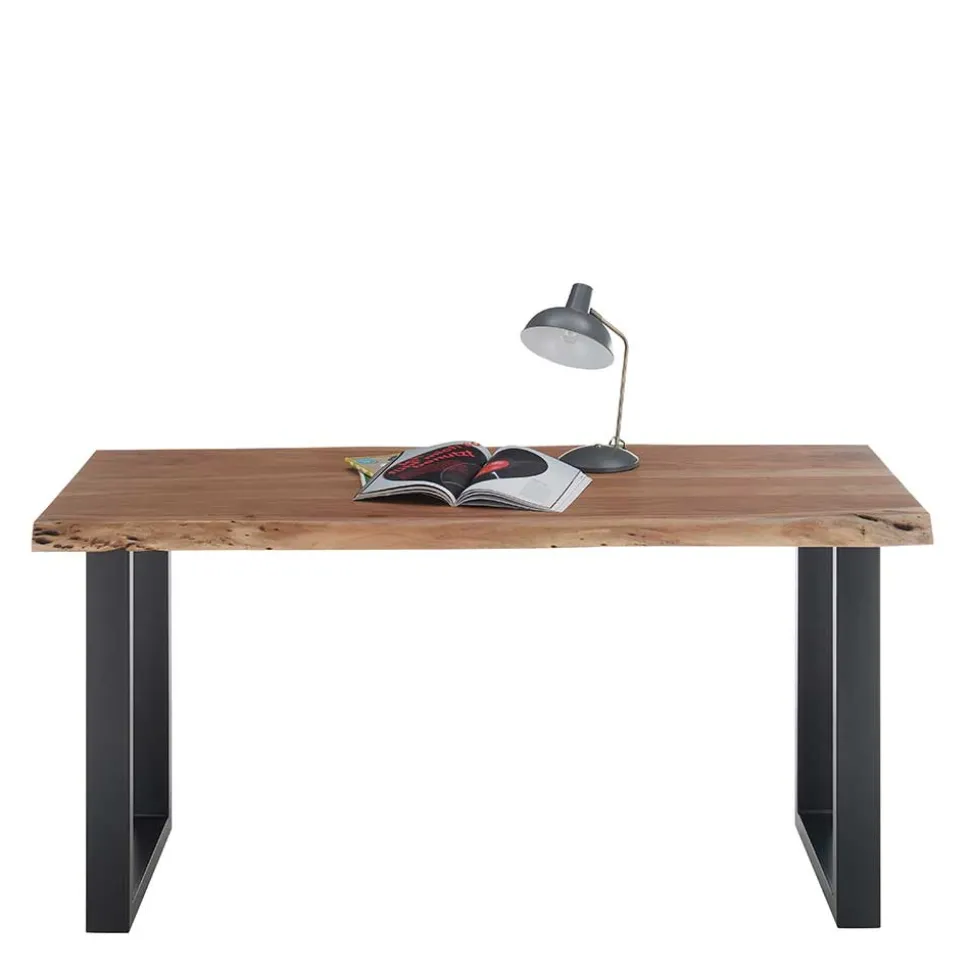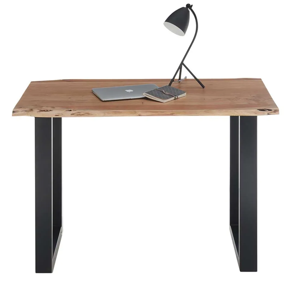 - Robuster Schreibtisch in Akaziefarben und Schwarz