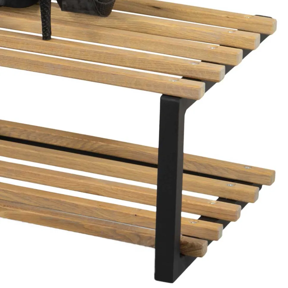 Mit einer Breite von 71 cm, einer Höhe von 26 cm und einer Tiefe von 34 cm bietet „Zoccos“ auf zwei Ebenen Platz für bis zu sechs Paar Schuhe – vom eleganten Business-Schuh bis zum gemütlichen Sneaker. Dank seiner rechteckigen Form und der durchdachten Struktur bleibt dabei alles übersichtlich und leicht erreichbar. Ob fest montiert an der Wand oder frei stehend auf dem Boden – „Zoccos“ passt sich flexibel Ihren Bedürfnissen an und bleibt dabei immer ein Blickfang.