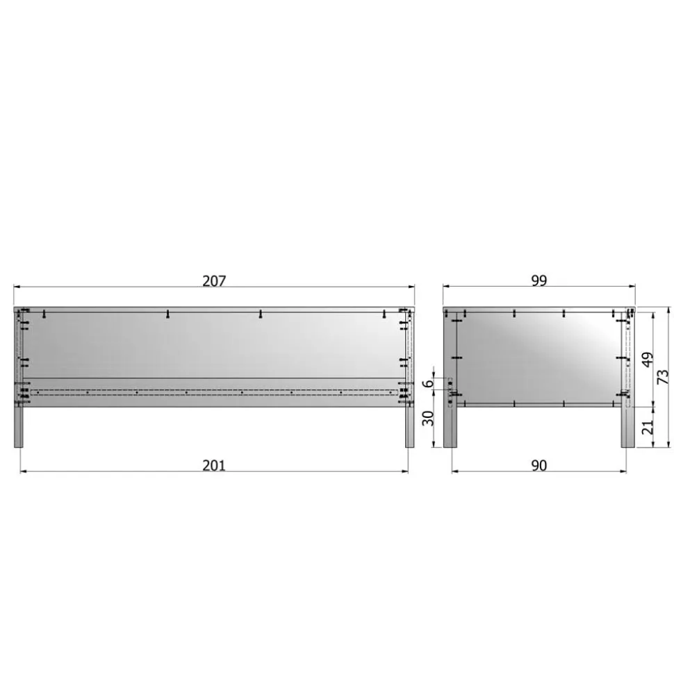 Kopf-, Fuß- und das hintere Seitenteil sind mit 73 cm gleich hoch und bilden einen harmonischen Rahmen für die 90×200 cm große Liegefläche. Das stabile Fußgestell sorgt für einen sicheren Stand, während die Einstiegshöhe von 36 cm einen angenehmen Zugang ermöglicht. Die Einlegetiefe für den Lattenrost beträgt 6 cm. Bitte beachten Sie: Lattenrost und Matratze sind nicht im Lieferumfang enthalten.