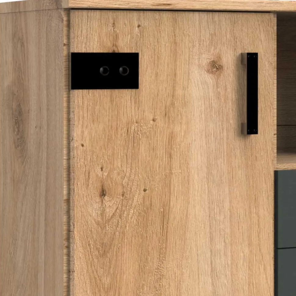 - Trendstarke Jugendzimmer Möbel in Plankeneiche Holzoptik und Dunkelgrau