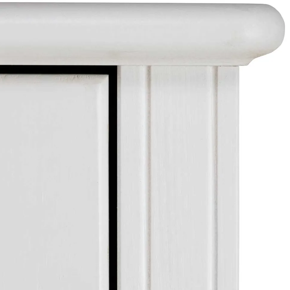 Mit einer in Weiß lackierten Oberfläche präsentiert sich das Sideboard nicht nur zeitgemäß und frisch, sondern profitiert auch von einem zusätzlichen Schutz gegen Abnutzung und Flecken. Dies erleichtert die Pflege und sorgt für eine lange Lebensdauer des Möbelstücks.