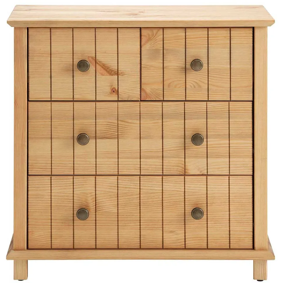 Mit ihren kompakten Maßen – 60 cm breit, 64 cm hoch und 30 cm tief – passt Akzinad ideal auch in kleinere Räume, ohne auf Stauraum zu verzichten. Vier großzügige Schubladen mit leichtgängigen Metallauszügen bieten viel Platz für Handtücher, Accessoires oder Alltagsgegenstände. Alles verschwindet ordentlich hinter den charmanten runden Metallknöpfen in antiker Optik – ein stilvolles Detail, das den nostalgischen Charakter dieser Kommode unterstreicht.