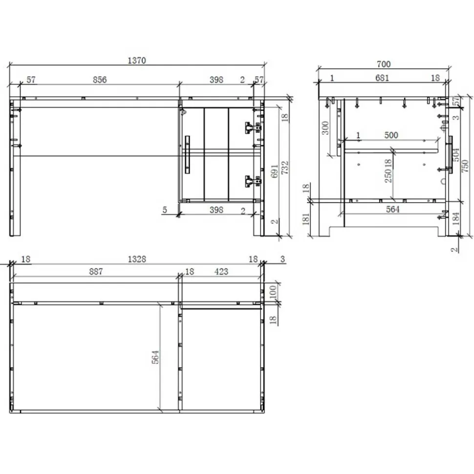 - Eine Schublade mit Metallauszug und ein offenes Fach