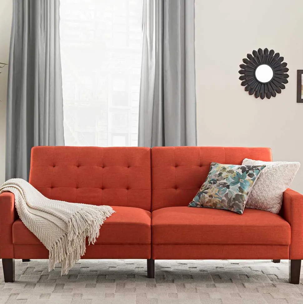 - Schickes Schlafsofa in Ziegelrot und Braun