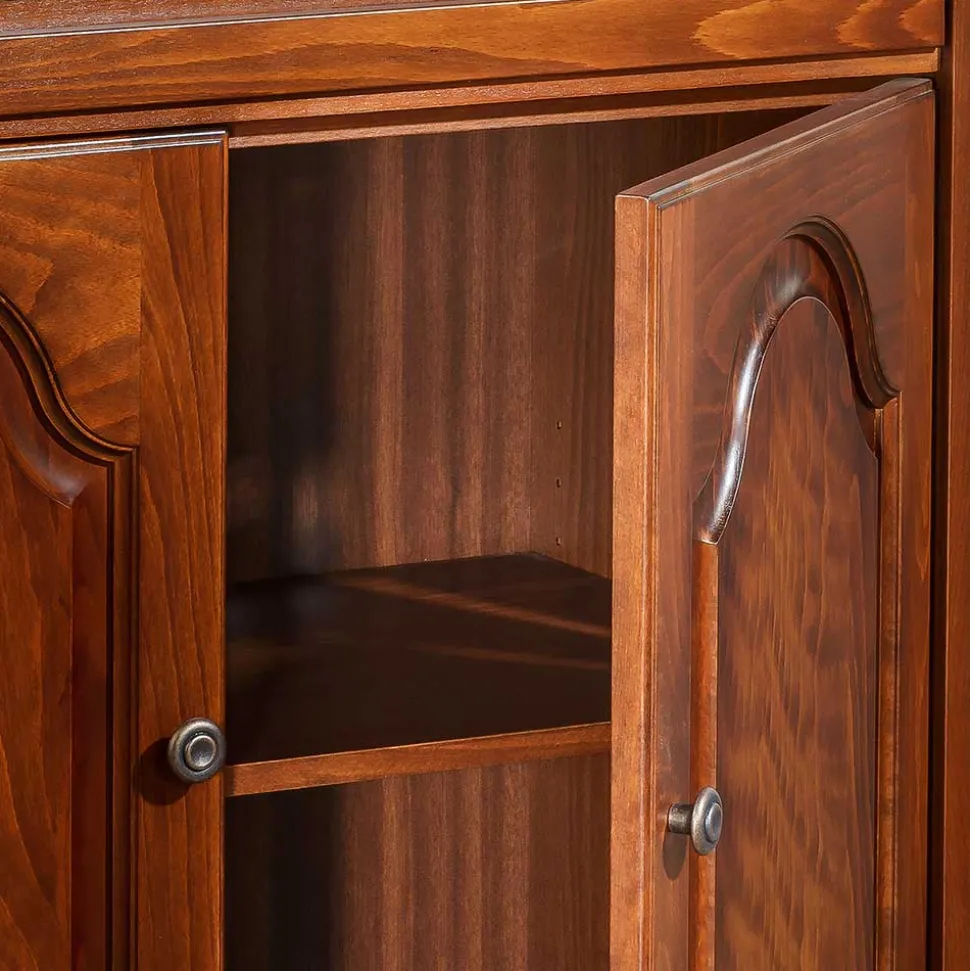 - Massivholz-Oberfläche lackiert und mit Antikfinish patiniert, Holzwerkstoff echtholzfurniert und ebenso behandelt
