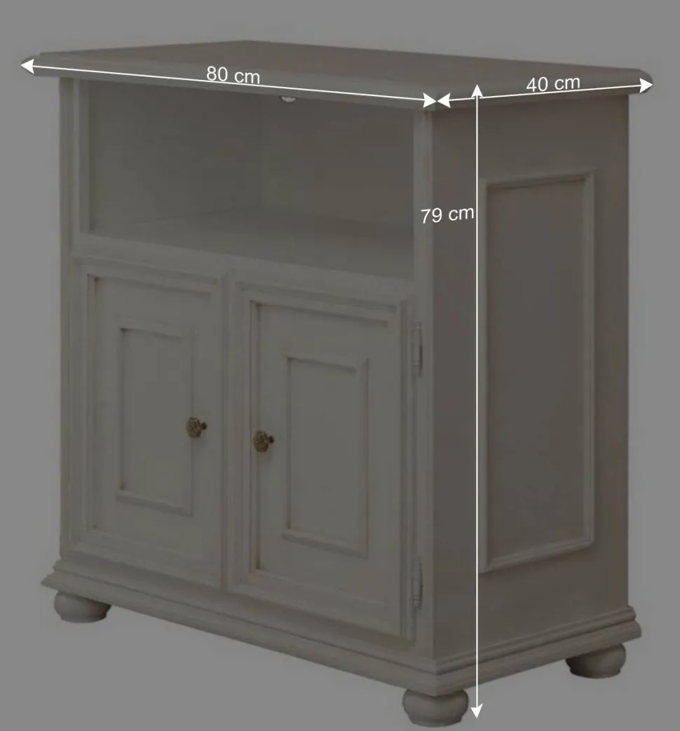 Mit den Maßen von 80 cm Breite, 79 cm Höhe und 40 cm Tiefe passt die Fernsehkommode „Vicina“ perfekt in verschiedene Wohnräume, ohne viel Platz zu beanspruchen. Jede Kommode ist ein Unikat, da es durch die handwerkliche Fertigung zu leichten Maßabweichungen kommen kann. Diese Abweichungen entstehen durch die natürliche Beschaffenheit des Holzes und die manuelle Verarbeitung, wodurch jedes Stück seine eigene, unverwechselbare Identität erhält. Mit einem Gewicht von ca. 22,5 kg ist die Kommode robust und dennoch leicht genug, um flexibel in Ihrem Raum arrangiert zu werden.