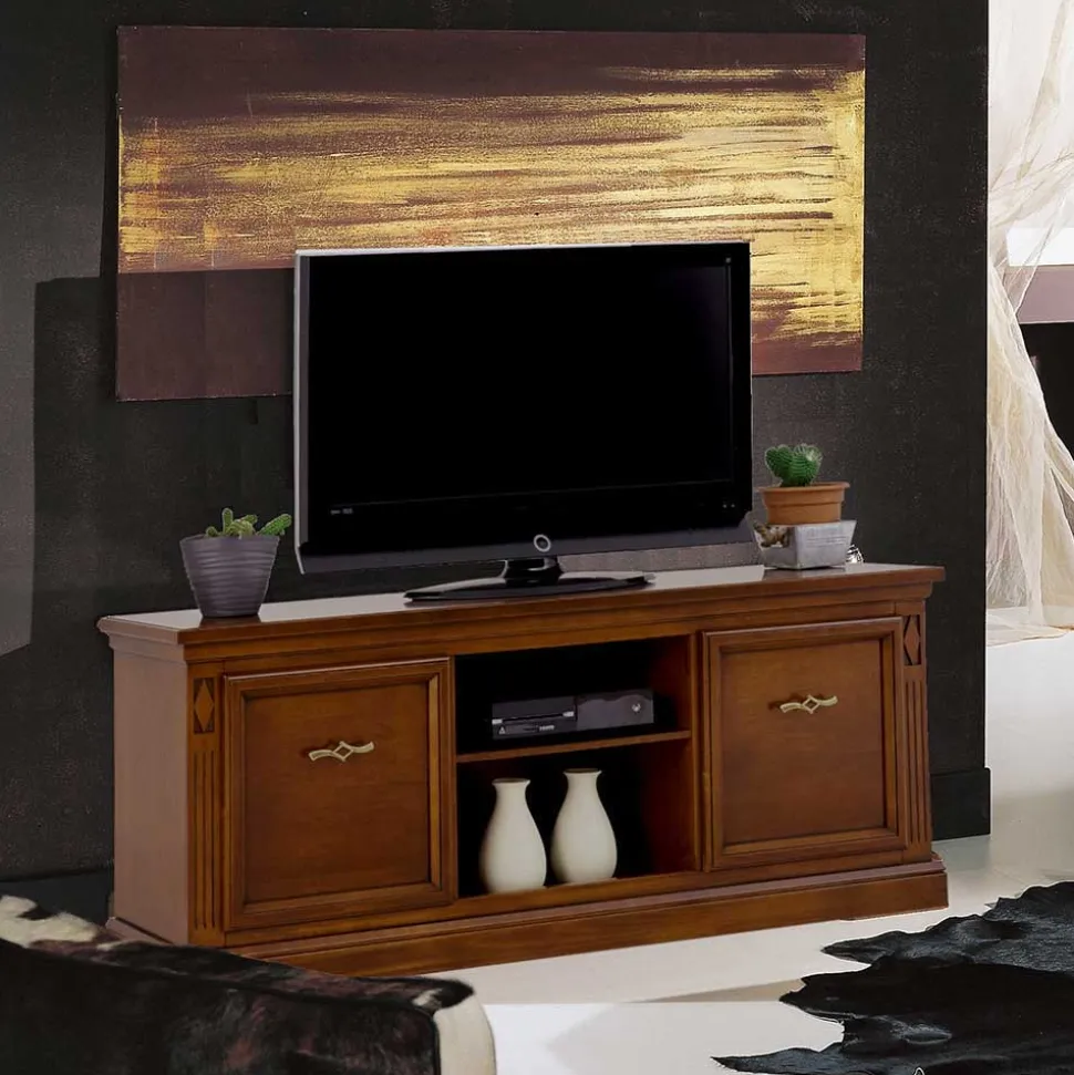 Mit dem TV-Board „Sienna“ holen Sie sich ein Möbelstück ins Haus, das den klassischen Stil auf eindrucksvolle Weise verkörpert. Klassischer Stil bedeutet eine harmonische Kombination aus edlen Materialien, ansprechenden Proportionen und liebevollen Details, die Ihren Wohnraum mit einer Atmosphäre von Beständigkeit und Stilbewusstsein füllt. Walnussbaumfarbig antik gebeizt und lackiert, strahlt das TV-Board „Sienna“ eine warme Eleganz aus, die in jedem Raum eine einladende Wirkung entfaltet und sich mühelos in verschiedenste Einrichtungsstile einfügt. Die Oberfläche wird von Hand poliert und erhält dadurch einen einzigartigen, subtilen Glanz, der die natürliche Schönheit des Walnussholzes noch mehr zur Geltung bringt.