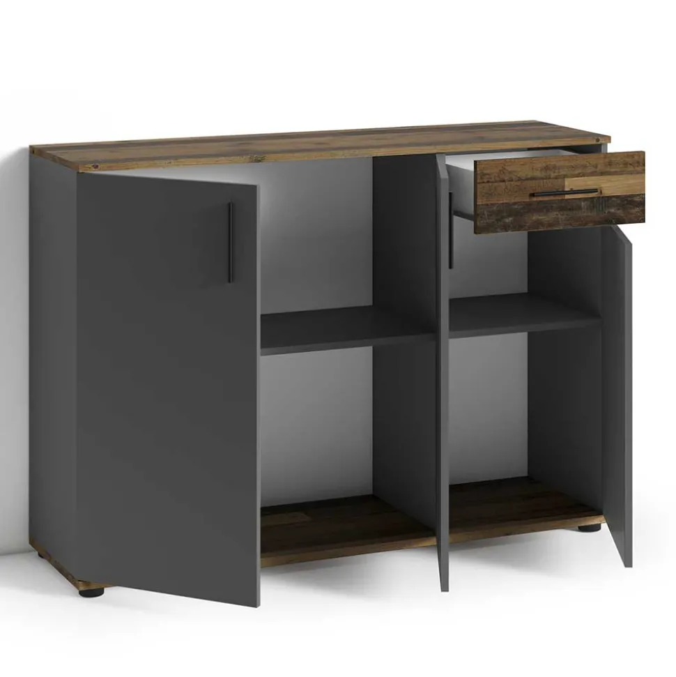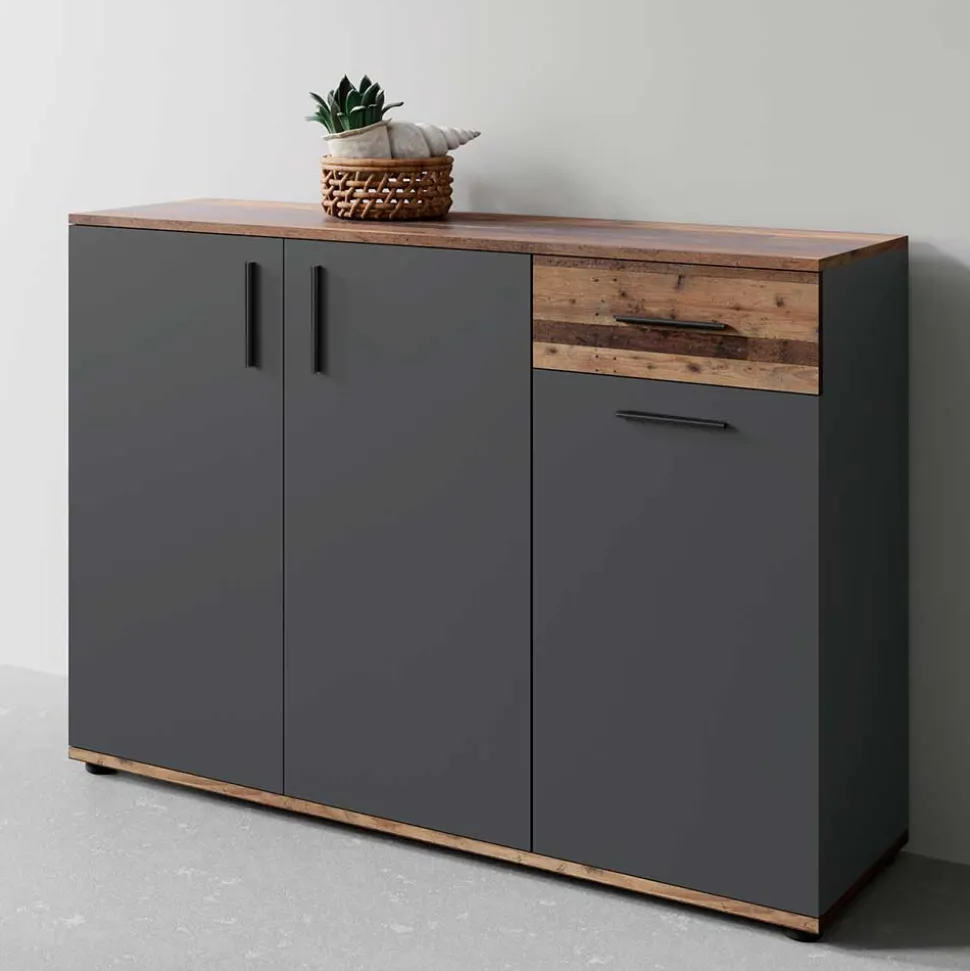 - Robustes Sideboard in Anthrazit und Altholz-Optik