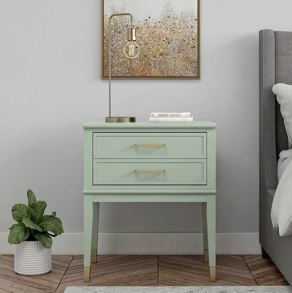 - Dekorative Kommode in Blassgrün und Goldfarben