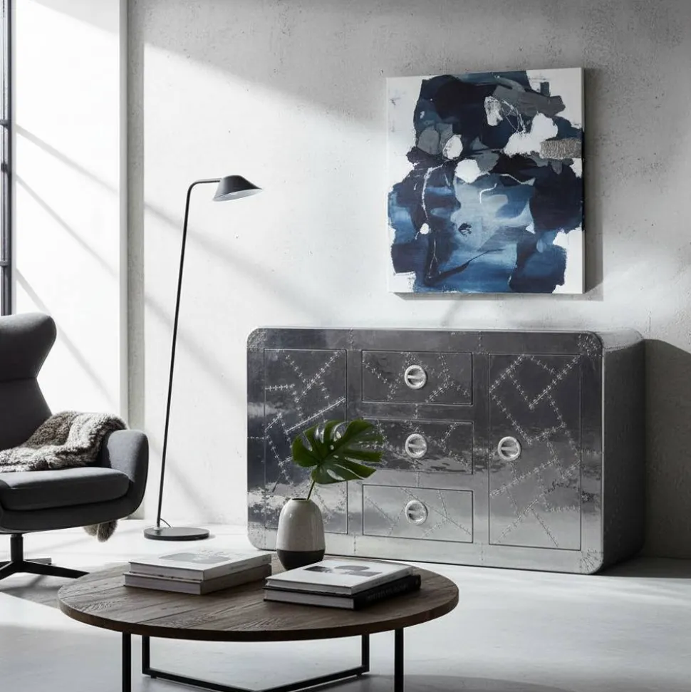 Sehen Sie sich um und entdecken Sie das unverwechselbare Sideboard „Pilot“, eine Hommage an den kühnen Industry und Loft Stil. Dieses Möbelstück ist nicht nur eine Stauraumlösung, sondern auch ein Kunstwerk, das den Raum prägt.