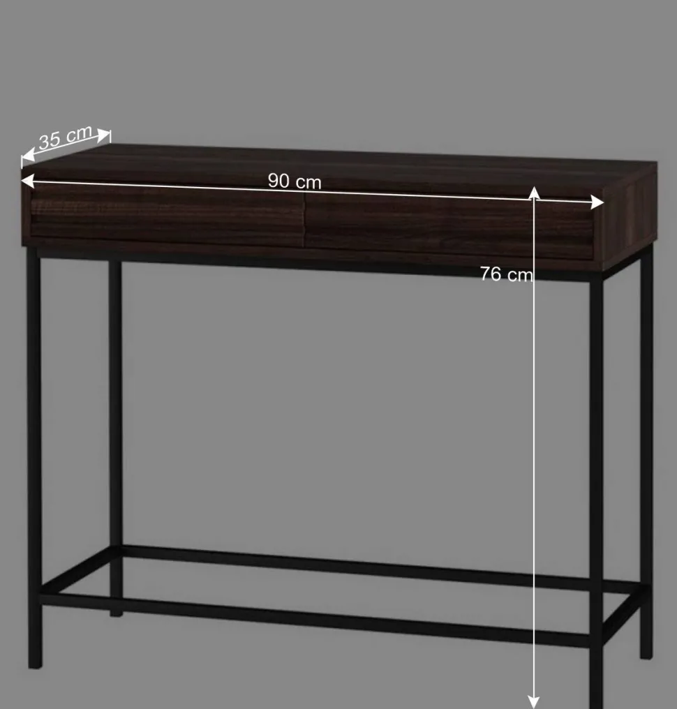 Mit einer Breite von 90 cm, einer Höhe von 76 cm und einer Tiefe von 35 cm findet der Konsolentisch auch in kleineren Räumen problemlos seinen Platz. Ob als dezenter Ordnungshelfer im Flur oder als schicke Ergänzung im Wohnbereich – seine schlanke Silhouette macht ihn zu einem flexiblen Möbelstück für verschiedenste Wohnkonzepte.