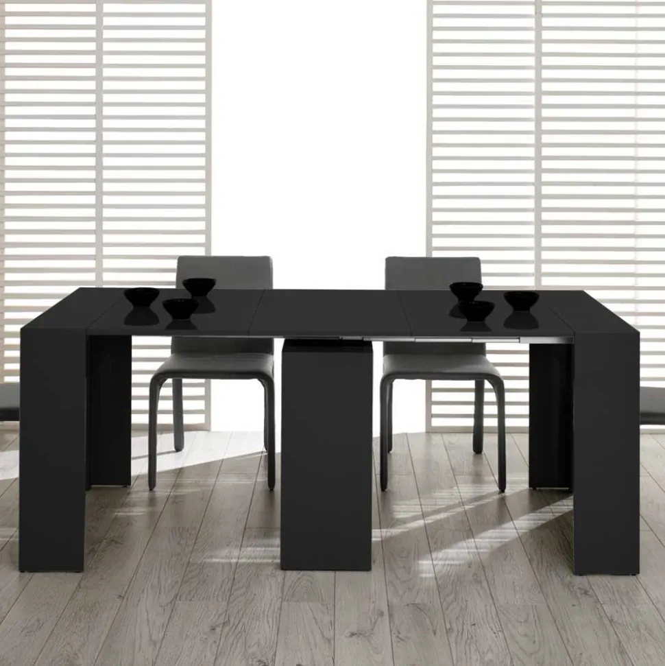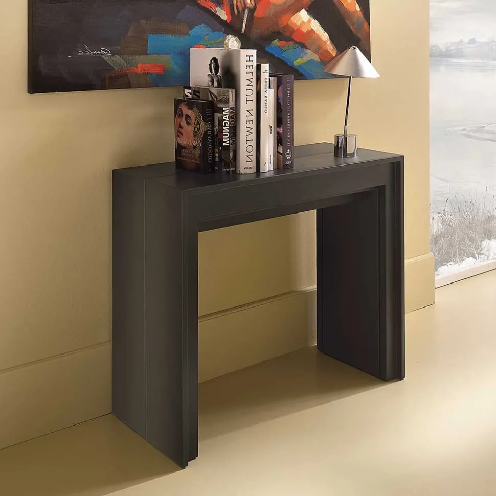 - Der Konsolentisch ist mit Hilfe der fünf Verlängerungen in einen Esstisch umbaubar