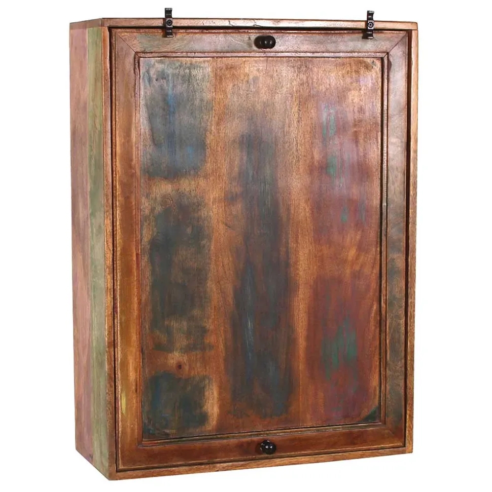 Die starken Gebrauchsspuren auf dem Holz sind gewollt und verleihen jedem Möbelstück einen einzigartigen Charakter. Jede Holzoberfläche ist in verschiedenen bunten Farben mit Farbresten lackiert, was einen lebendigen und dynamischen Eindruck schafft. Das Ergebnis ist ein Möbelstück, das nicht nur funktional ist, sondern auch als Kunstwerk in Ihrer Küche oder Ihrem Partyraum dienen kann.