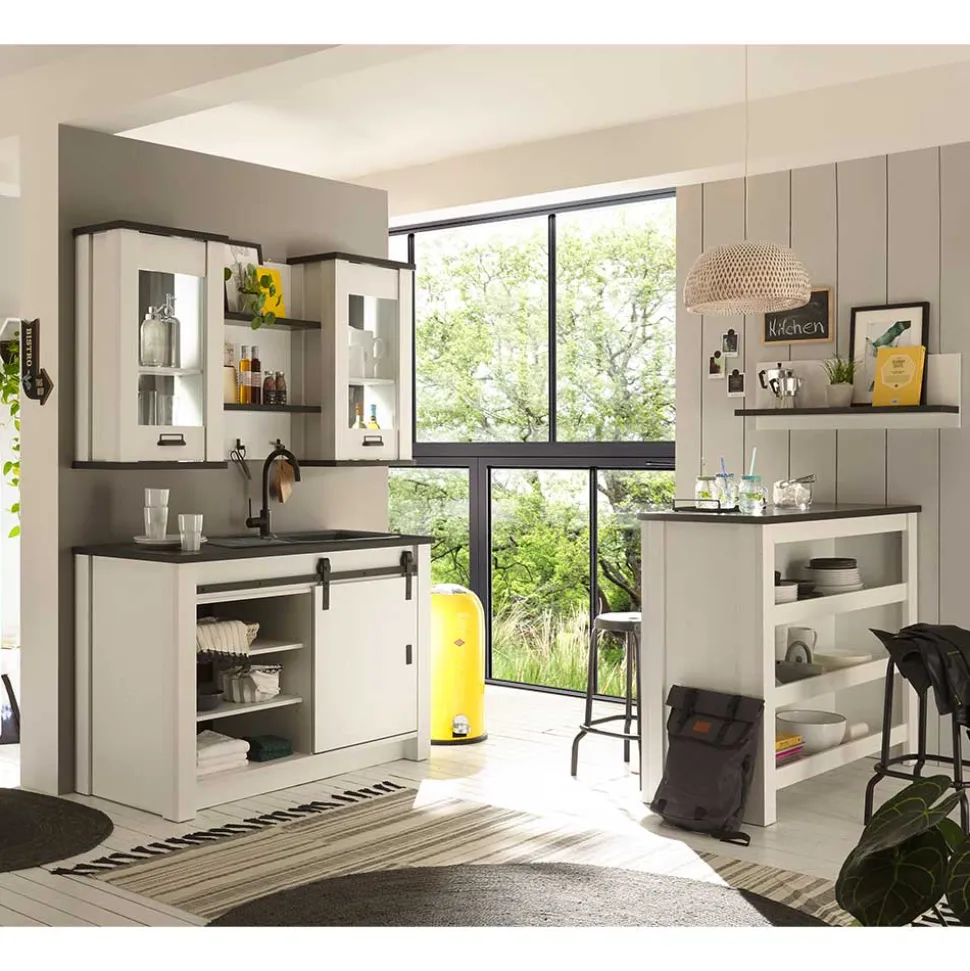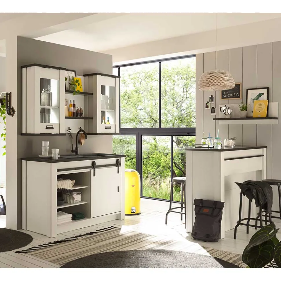 Küchenmöbel mit Theke in Weiß & Grau - Eture (sechsteilig)