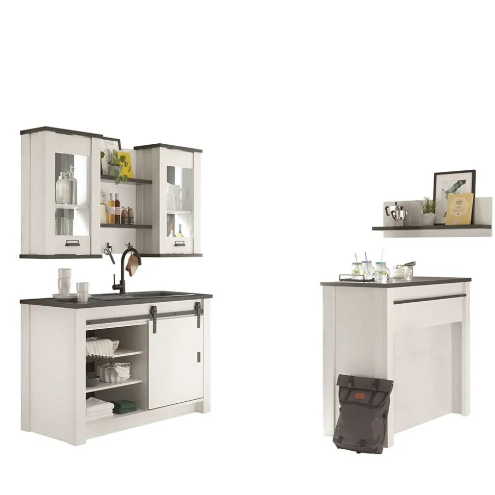 Küchenmöbel mit Theke in Weiß & Grau – Eture (sechsteilig)