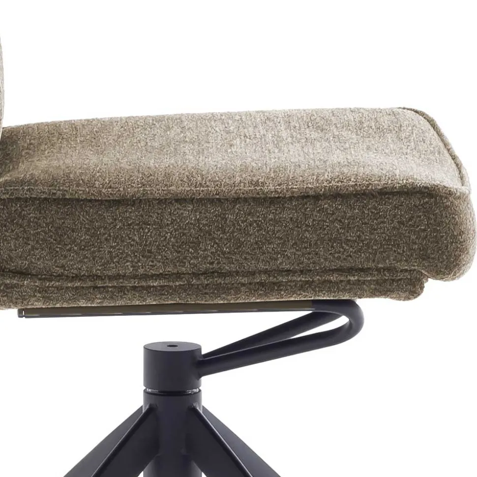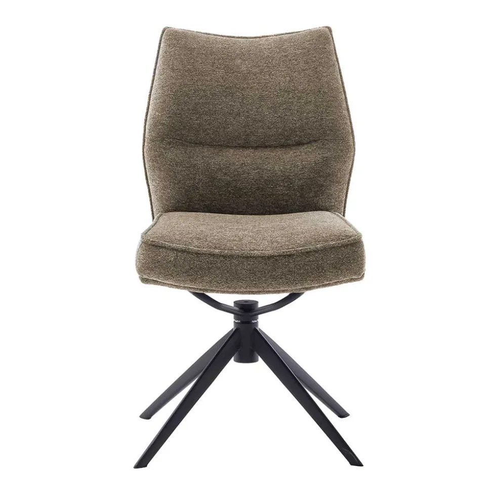 Der Küchenstuhl „Manore“ vereint zeitlose Eleganz mit durchdachter Funktionalität. Sein strukturierter Chenillegewebe-Bezug in Braun schafft eine warme Atmosphäre, während das mattschwarz lackierte Metallgestell mit Schwingfunktion für eine moderne Optik und zuverlässige Stabilität sorgt.