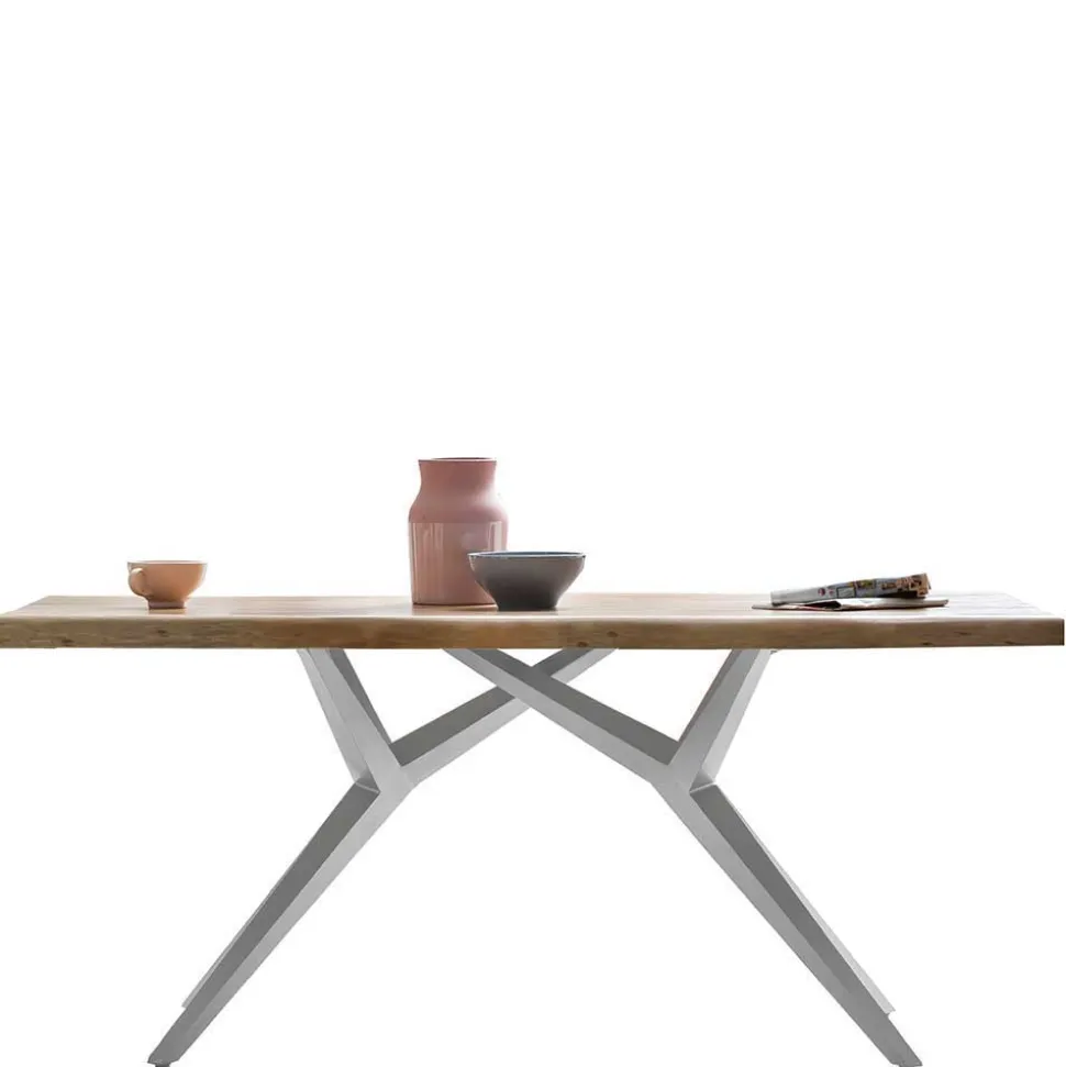 - Massiver Esstisch in Mangoholz Naturfarben und Antiksilber