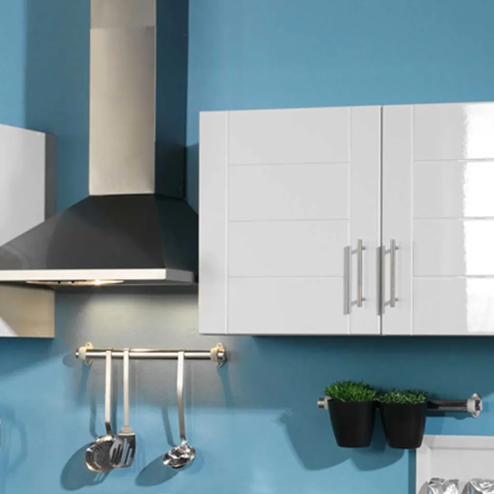 Die Küchenzeile „Flemingo“ kommt als Set, bestehend aus zwei Hängeschränken, einem Unterschrank, einem Herdumbauschrank und einem Spülenschrank mit Einbaubecken. Das integrierte Spülbecken mit praktischer Abtropffläche erleichtert Ihnen den Alltag in der Küche und schafft einen funktionalen Arbeitsbereich.