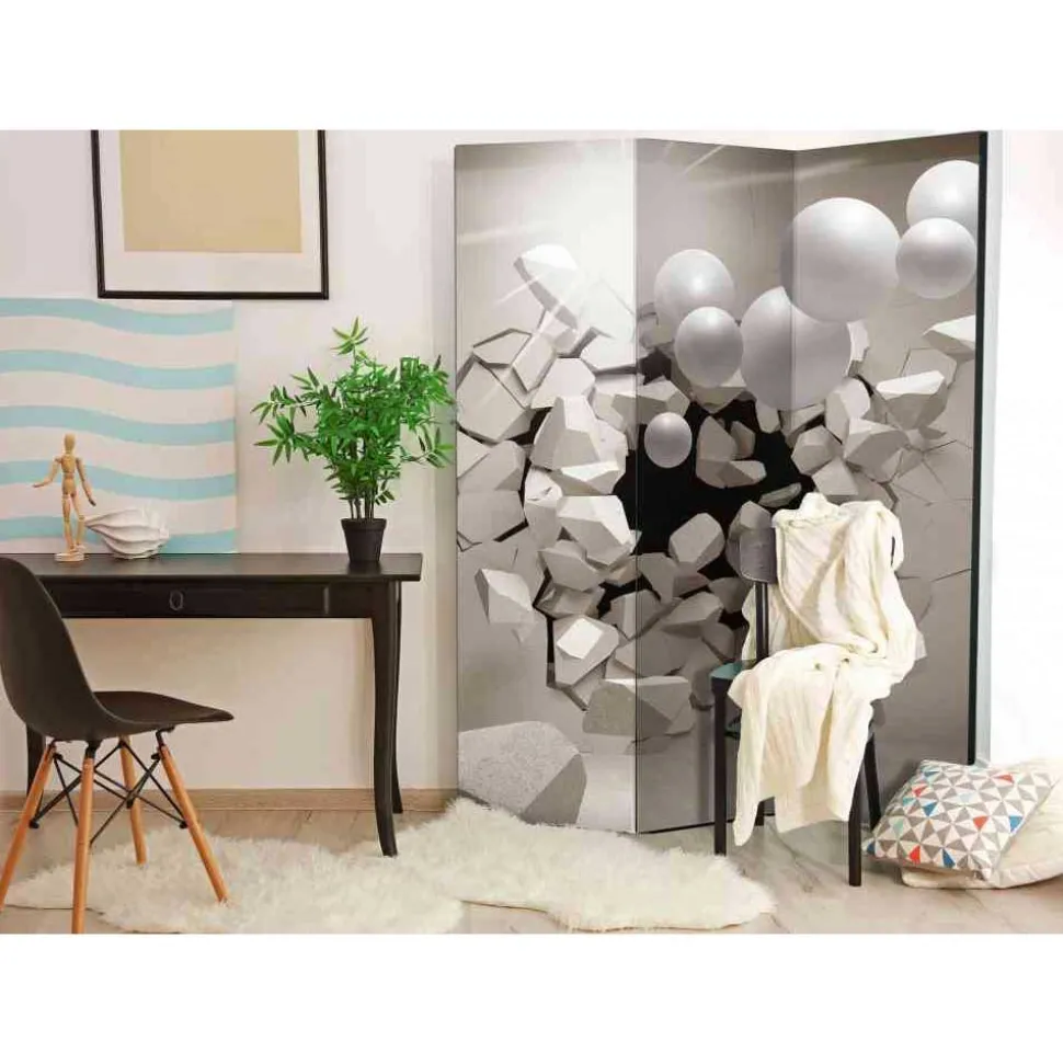 - Ansprechendes 3D-Motiv einer druchbrochenen Wand auf Vorder- und Rückseite