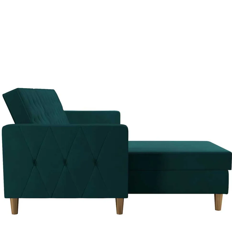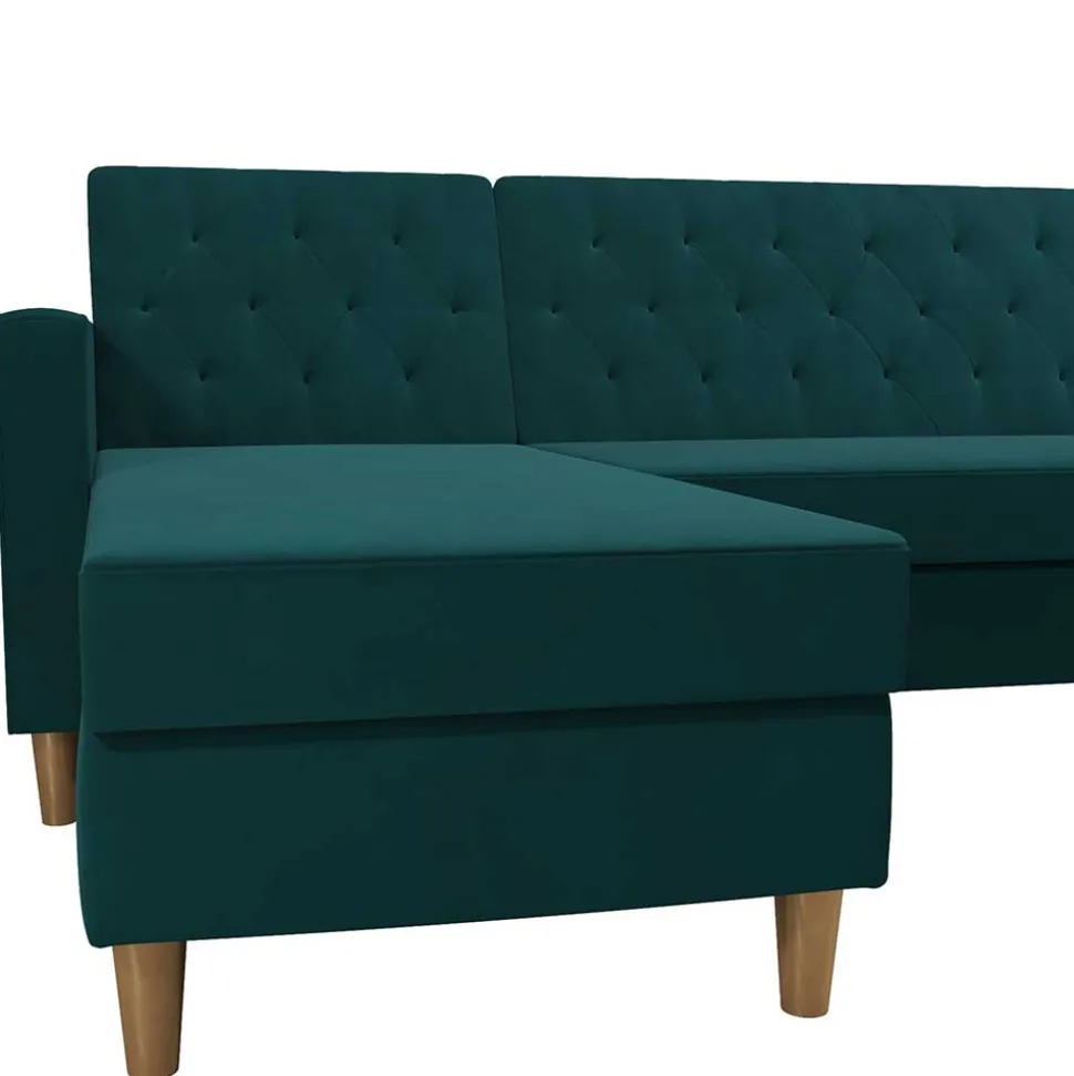 - Günstiges Eck-Schlafsofa in Petrol und Messingfarben