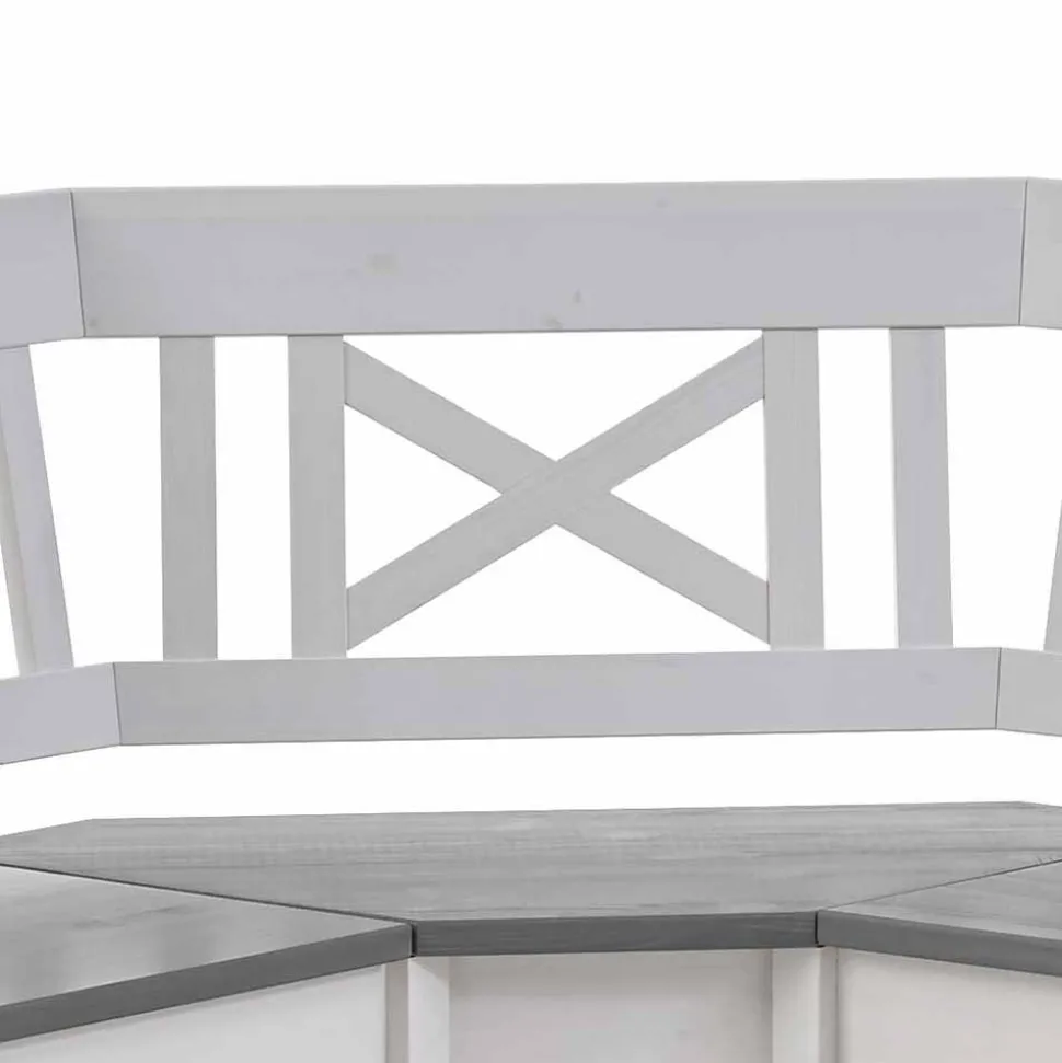 Warmes Holz, liebevolle Details und eine charmante Optik – die Eckbank „Yoan“ bringt den behaglichen Landhausstil in Ihr Zuhause. Dieser Stil steht für Natürlichkeit, Geborgenheit und eine Atmosphäre, die zum Verweilen einlädt. Die Kombination aus weiß lackierten Flächen und einer grau gebeizten Sitzfläche mit durchscheinender Maserung verleiht dieser Sitzbank einen authentischen und hochwertigen Look. Perfekt für alle, die einen Hauch von Nostalgie mit modernem Wohnkomfort verbinden möchten.