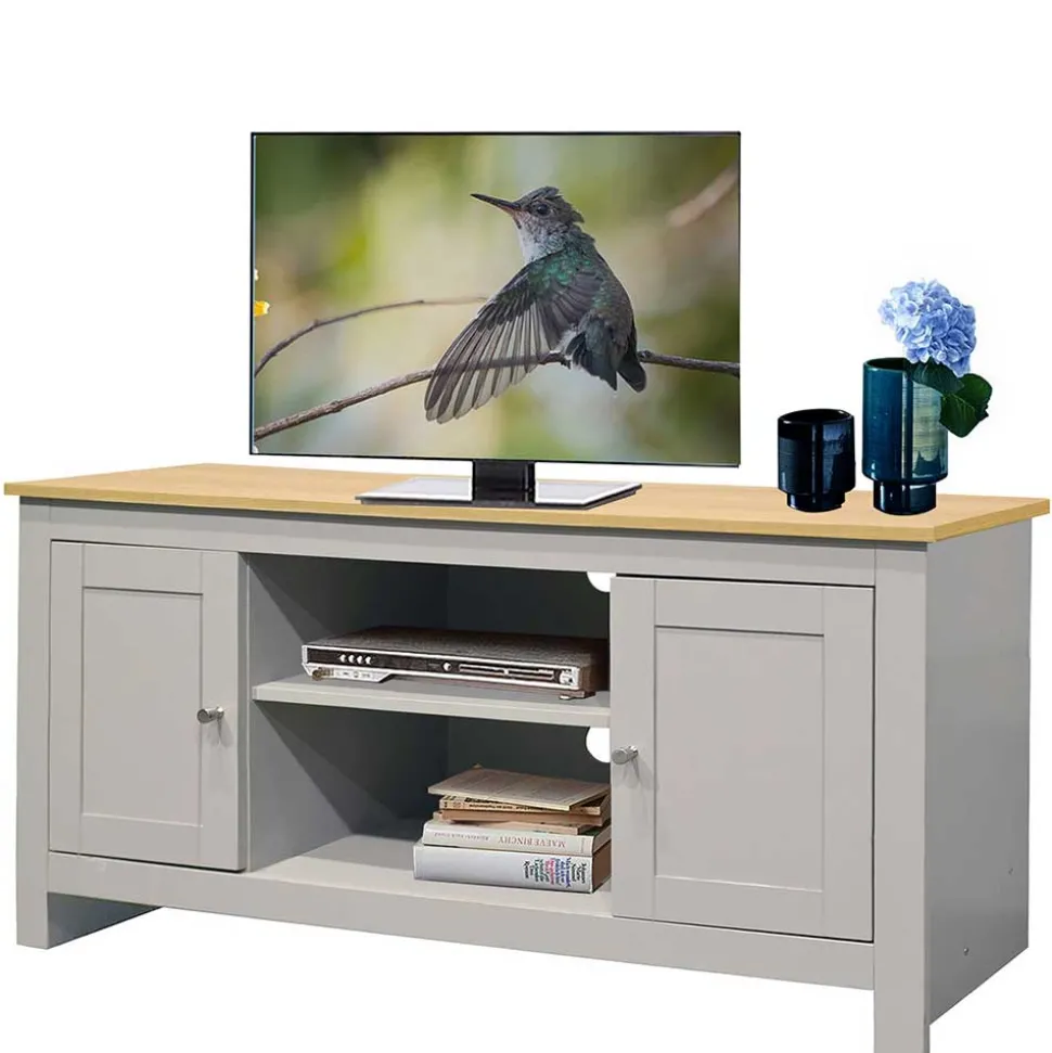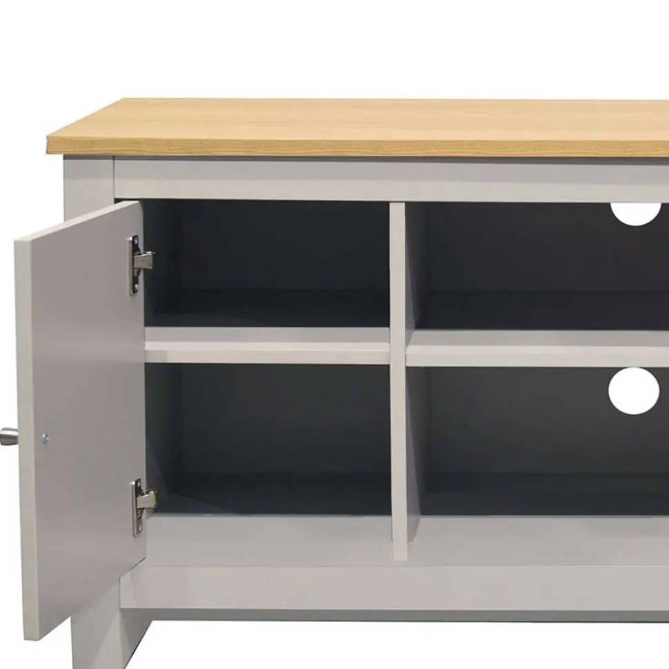 - Geschmackvolles TV Board in Grau und Eichefarben