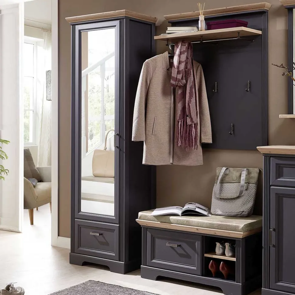 - Erstklassige Garderobenkombination in Dunkelgrau und Eichefarben