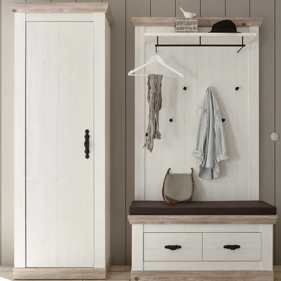- Stilvolle Garderoben Kombination in Pinie verwittert und Weiß