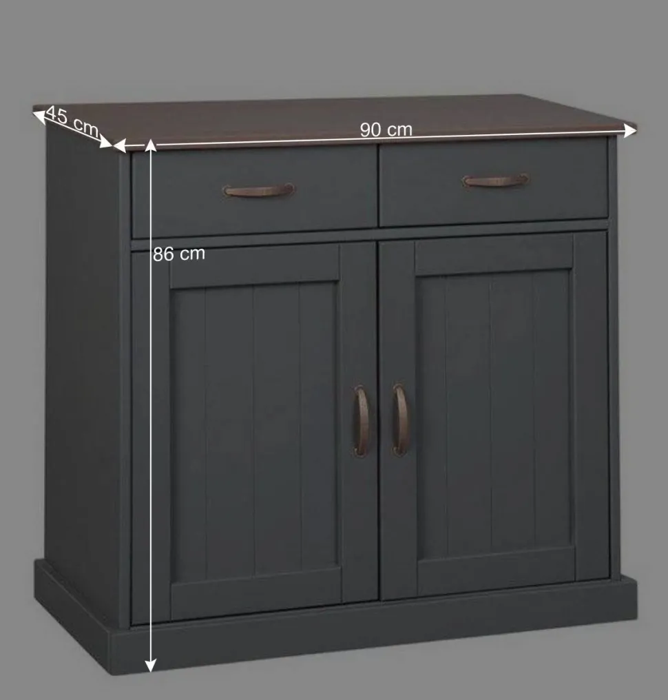 Mit den Maßen 90 cm Breite, 86 cm Höhe und 45 cm Tiefe bietet unsere Kommode „Nepplan“ nicht nur viel Stauraum, sondern ist auch äußerst vielseitig einsetzbar. Ob im Wohnzimmer, Schlafzimmer oder Flur – sie findet überall ihren perfekten Platz. Die zwei Türen in Kassettenoptik, ausgestattet mit hochwertigen Metallbeschlägen, verbergen einen durchgehenden Einlegeboden, der Ihren Stauraumbedarf elegant löst. Die zwei Schubladen auf Metallauszügen gleiten sanft und bieten zusätzlichen Platz für Ihre Habseligkeiten.