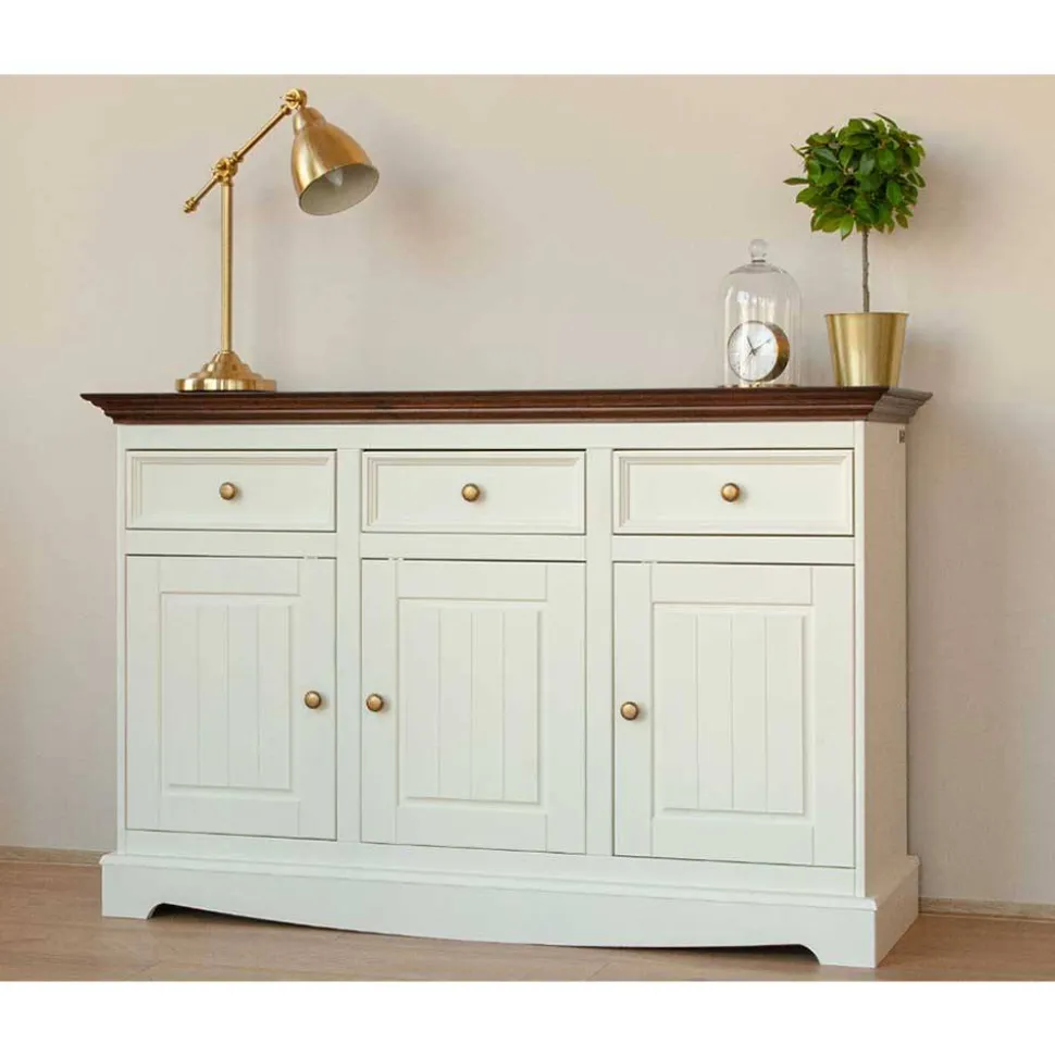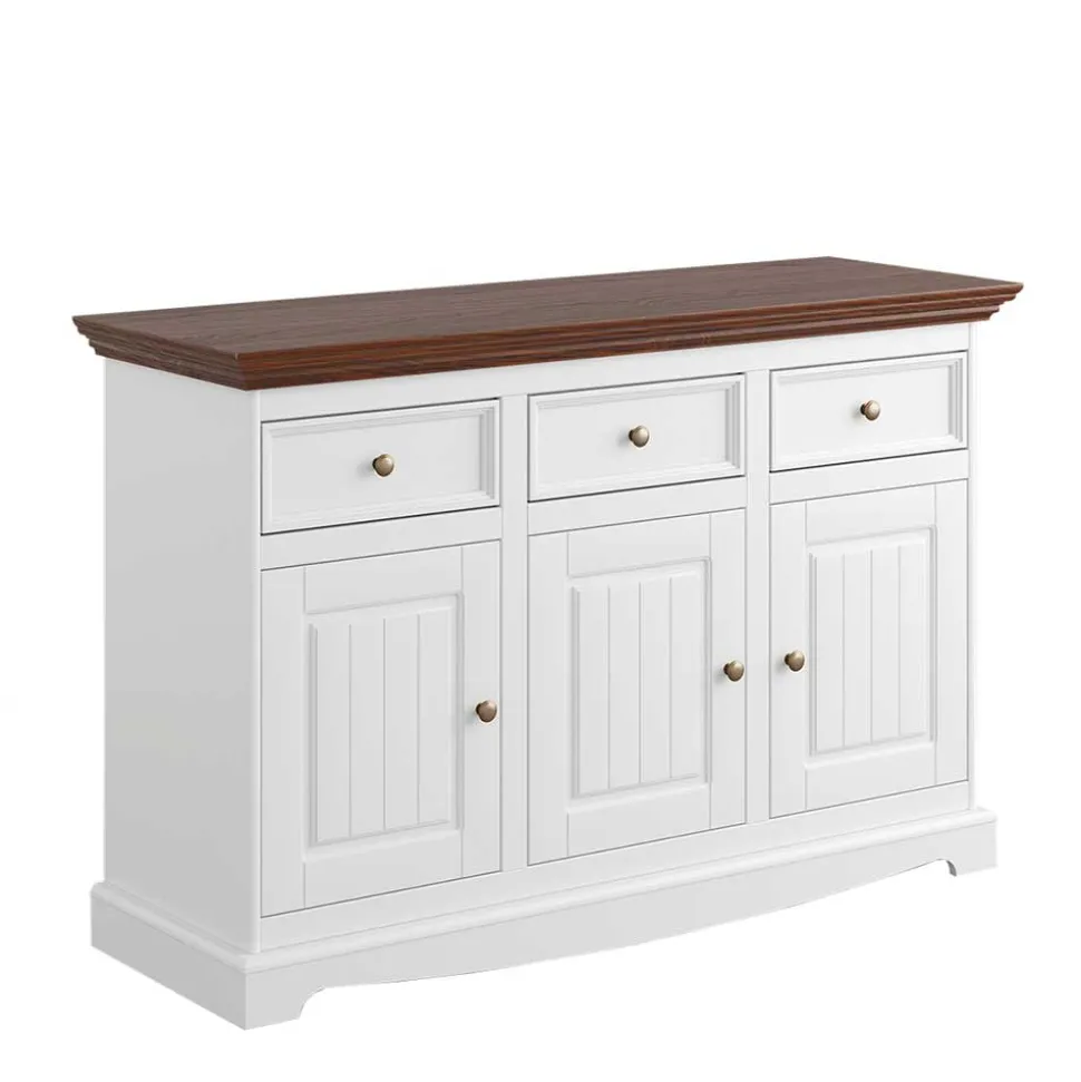 - Ansprechendes Sideboard in Weiß und Nussbaumfarben