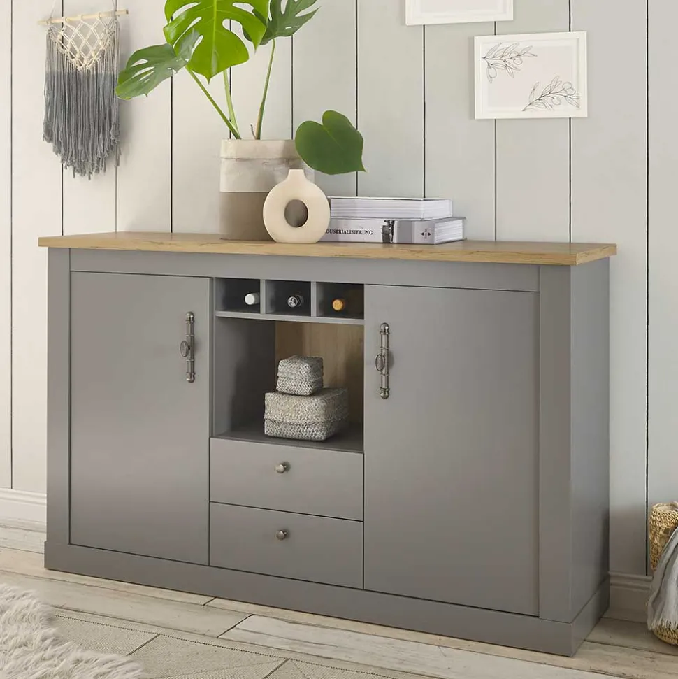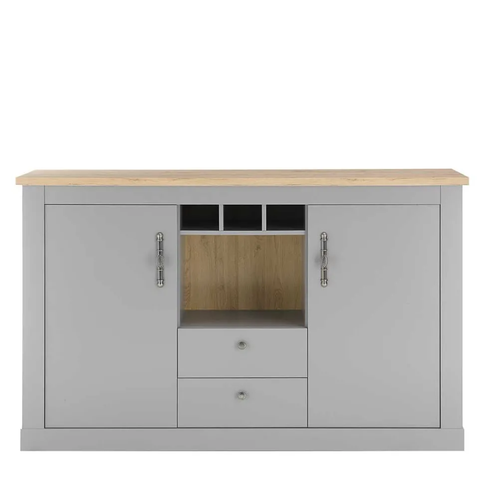 - Trendiges Sideboard in Lichtgrau und Eichefarben