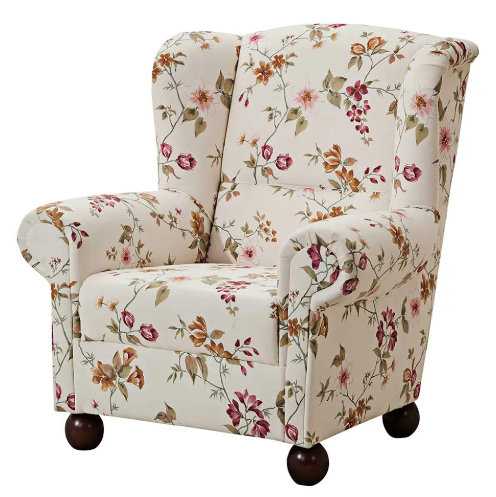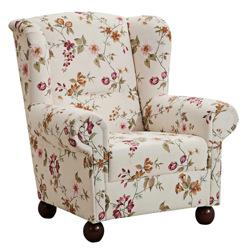 - Bildschöner Sessel in Weiß, Bunt und Nussbaumfarben
