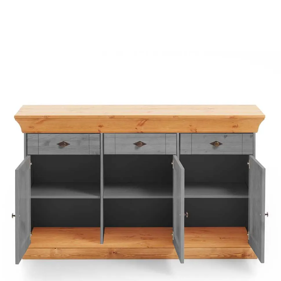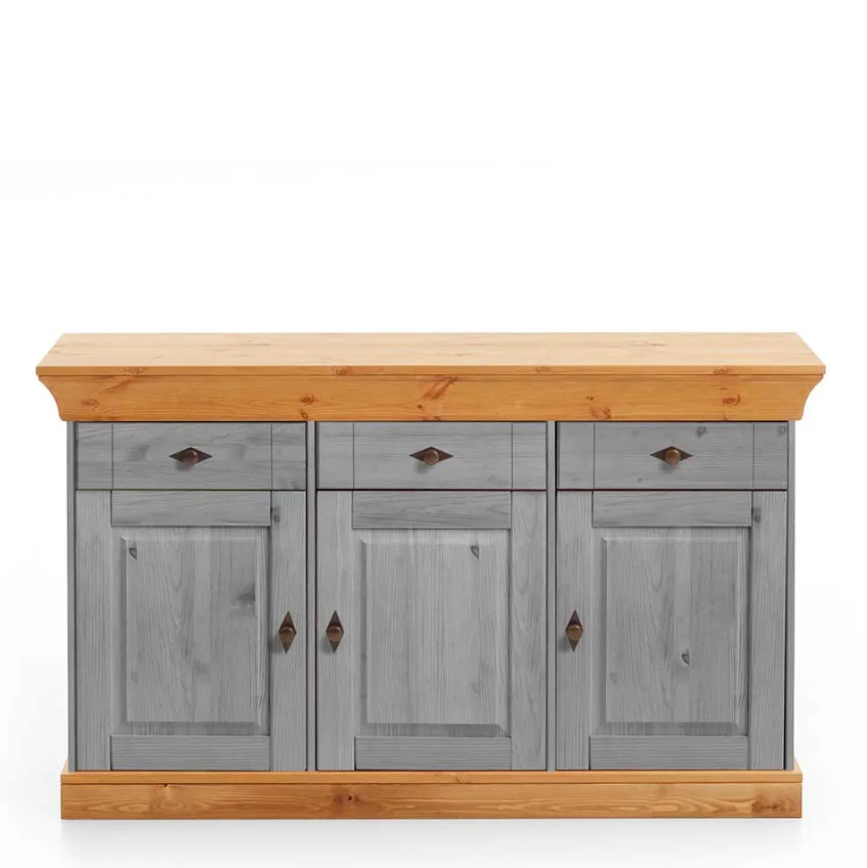 - Attraktive Kommode in Grau und Kiefer laugenfarben