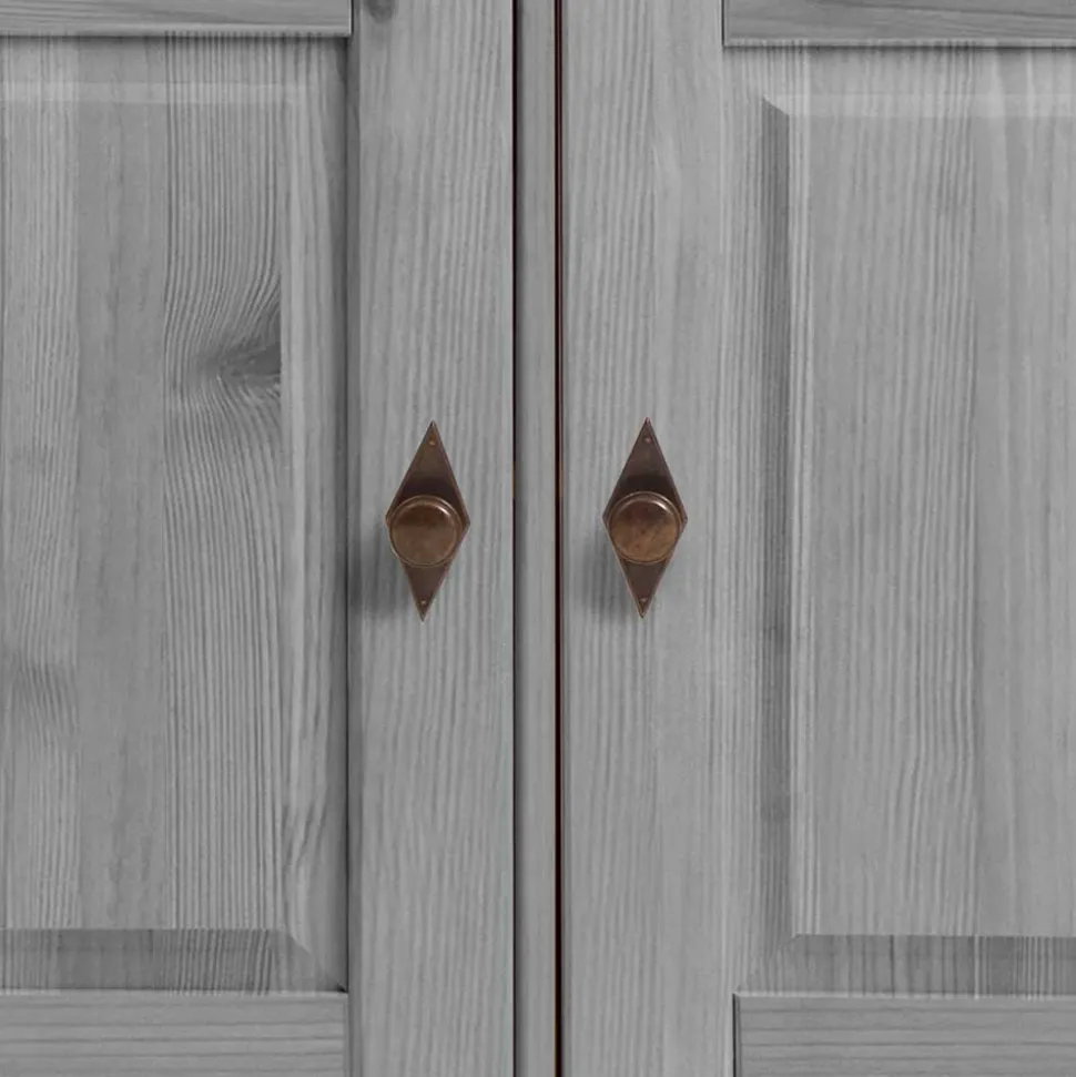 Hinter den drei Drehtüren aus massivem Kiefernholz mit eleganter Profilfräsung verbergen sich verstellbare Einlegeböden, die dir Flexibilität bei der Aufbewahrung bieten. Egal, ob du Geschirr, Kleidung oder Wohnaccessoires verstauen möchtest – alles findet hier seinen Platz. Der verstellbare Einlegeboden passt sich deinen Bedürfnissen an und maximiert den verfügbaren Stauraum.