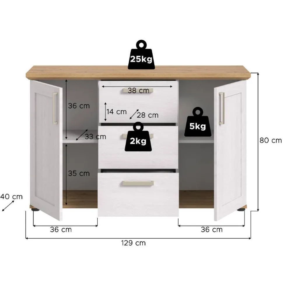 - Ansprechendes Sideboard in Weiß und Wildeichefarben