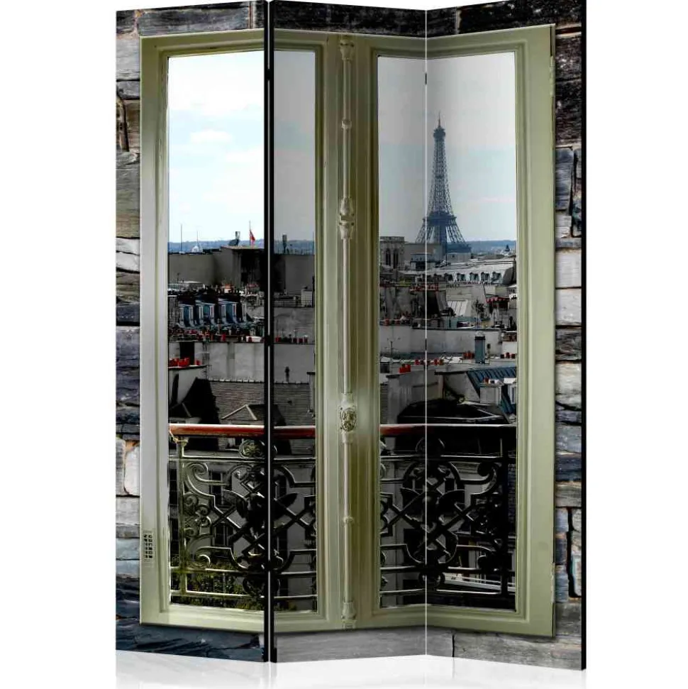 - Ansprechendes Motiv mit Blick durch ein geschlossenes Fenster auf die Pariser Stadt