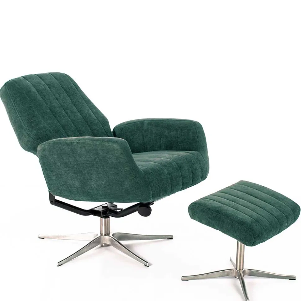 - Wirkungsvoller Relax Sessel mit Hocker in Petrol und Chromfarben