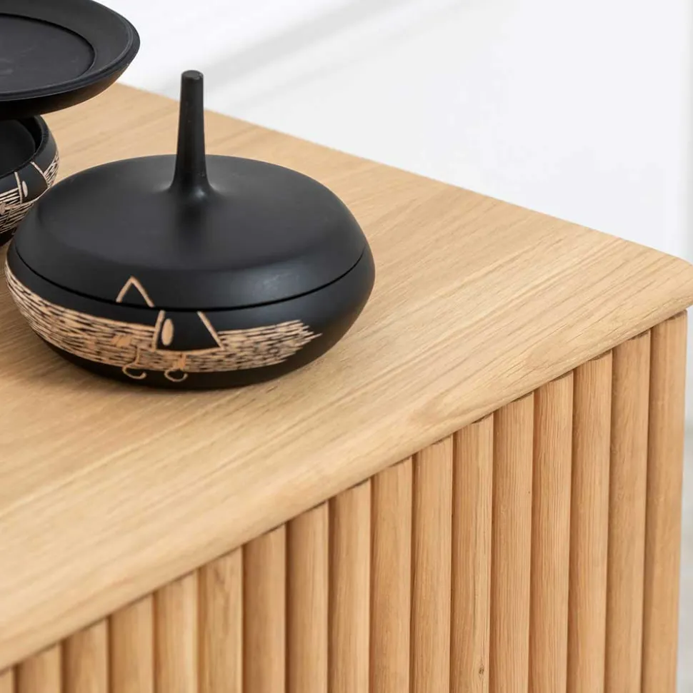 - Oberflächen geschliffen und weiß geölt, Fronten mit tiefer Rillenstruktur gestaltet