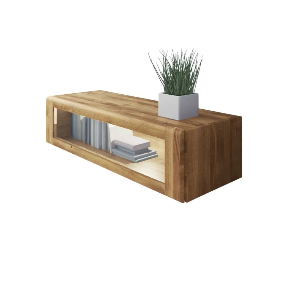 - Gefertigt aus Wildeiche Massivholz (durchgehende Lamelle) und Glas
