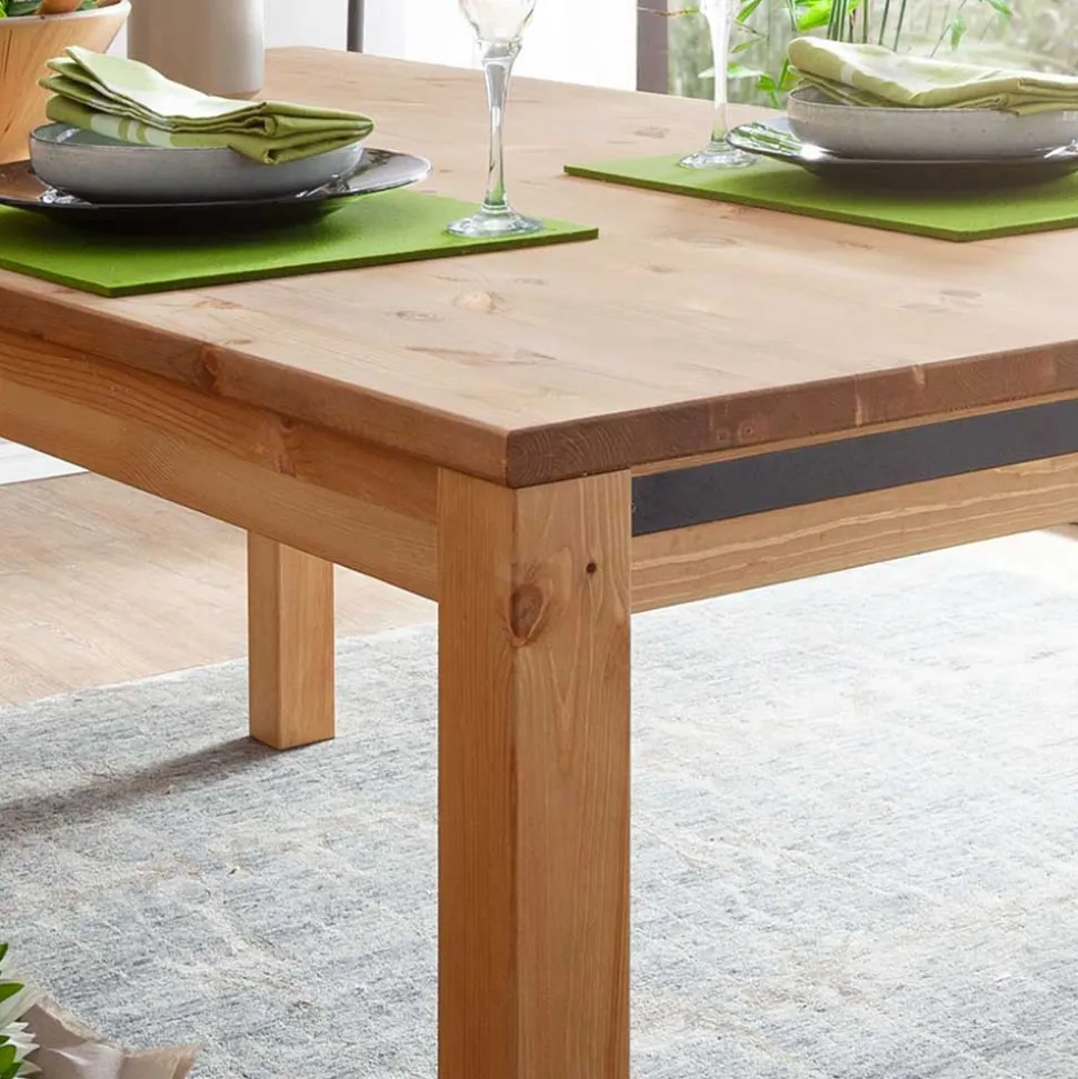 Der Esstisch „Filedria“ ist vollständig aus massivem Kiefernholz hergestellt. Kiefernholz ist bekannt für seine Langlebigkeit und Stabilität, was den Tisch besonders widerstandsfähig gegenüber alltäglichen Gebrauchsspuren macht. Die natürliche Maserung des Holzes bringt eine warme und gemütliche Note in Ihre Küche oder den Essbereich und macht jedes Stück zu einem Unikat.