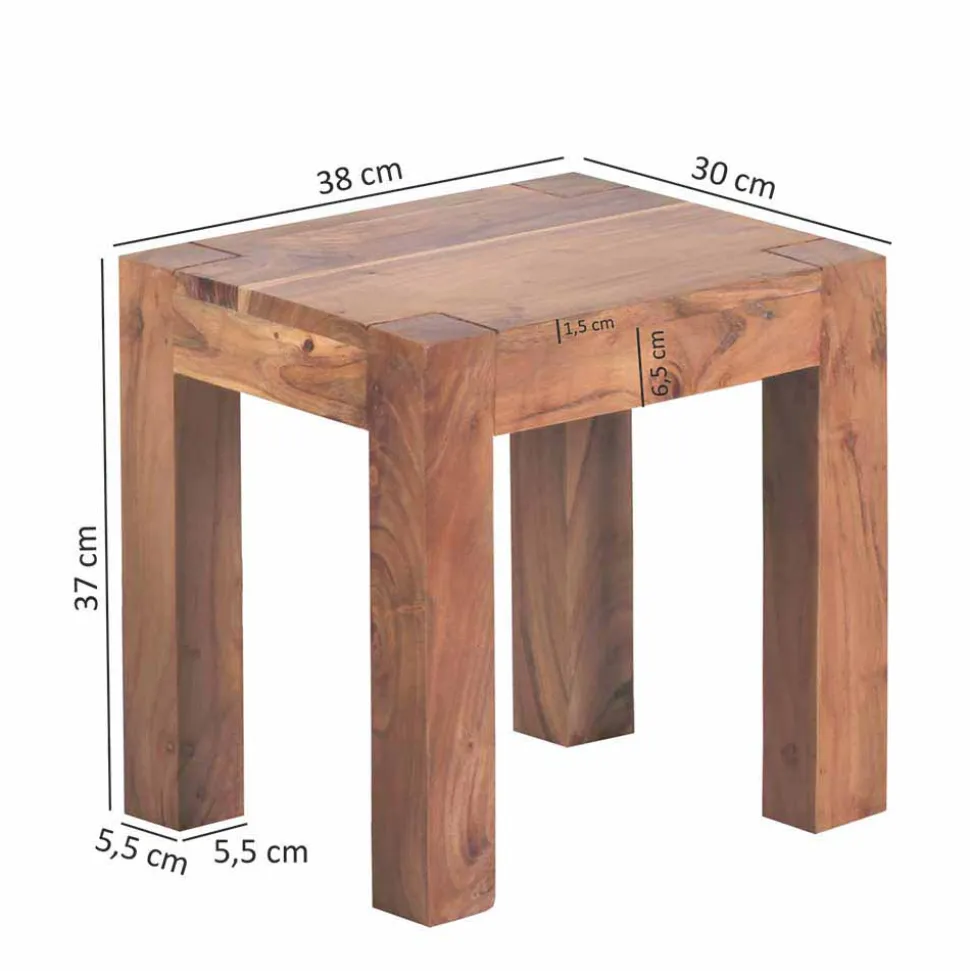Akazienholz zählt zu den härtesten und langlebigsten Hölzern überhaupt. Die dichte Struktur des Holzes macht es besonders widerstandsfähig gegenüber Kratzern, Druckstellen und anderen Beanspruchungen des Alltags. Möbel aus Akazie behalten ihre Form, sind stabil und gleichzeitig elastisch. Besonders hervorzuheben ist auch die Nachhaltigkeit dieses Rohstoffs: Akazien wachsen schnell nach und stellen damit eine umweltbewusste Alternative zu vielen Tropenhölzern dar. Bei diesem Beistelltisch kommt ausschließlich massives Akazienholz zum Einsatz – für eine Qualität, die man sieht und fühlt.