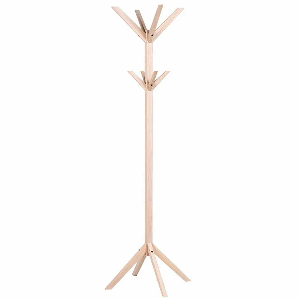 Mit einer kompakten Größe von 59 cm Breite und Tiefe bei 178 cm Höhe ist dieser Garderobenständer ein wahres Raumwunder. Acht stabile Haken aus Massivholz sind sternförmig in zwei Reihen angeordnet und bieten viel Platz für Jacken, Mäntel, Taschen oder Accessoires. Jeder Haken ist fest montiert, sodass maximale Stabilität gewährleistet ist – ganz ohne Wackeln oder Nachjustieren.