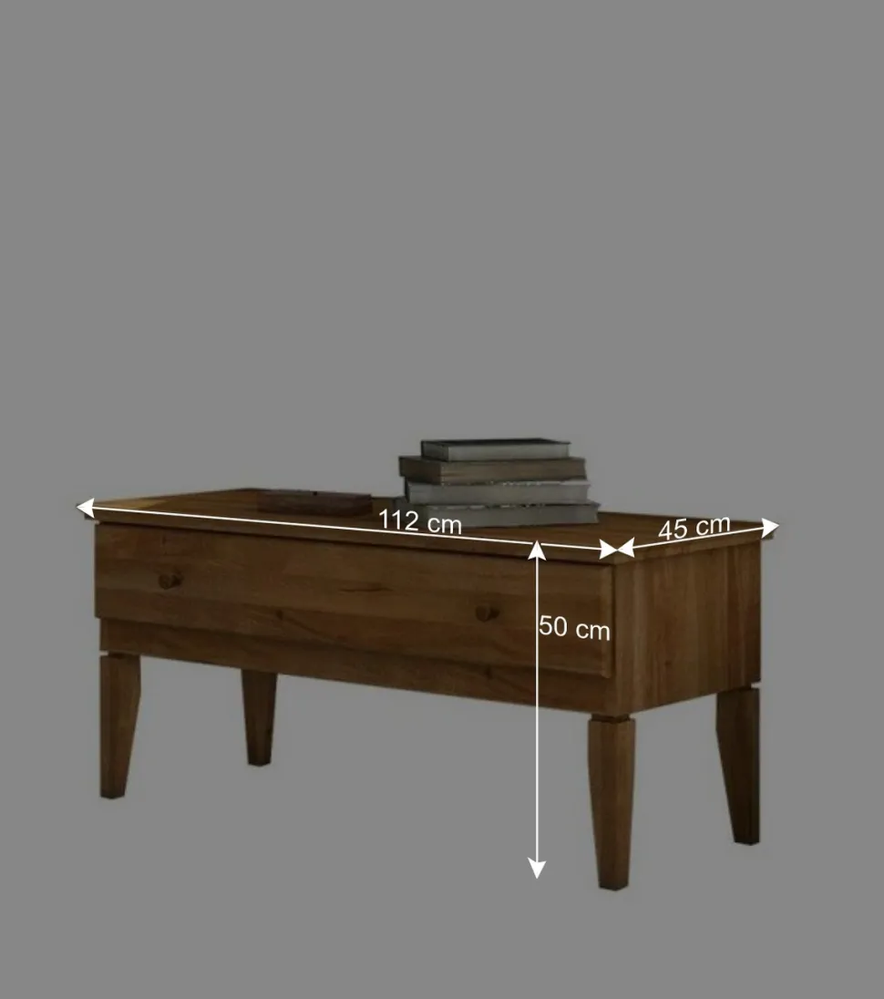 Mit einer Breite von 112 cm, einer Höhe von 50 cm und einer Tiefe von 45 cm bietet dieses Lowboard ausreichend Stauraum. Die Stärke der Deckplatte von 2,5 cm sowie die 2 cm starken Front- und Seitenteile unterstreichen die robuste Bauweise. Die Deckplatte mit profilierter Kante fügt sich nahtlos in das Gesamtdesign ein.