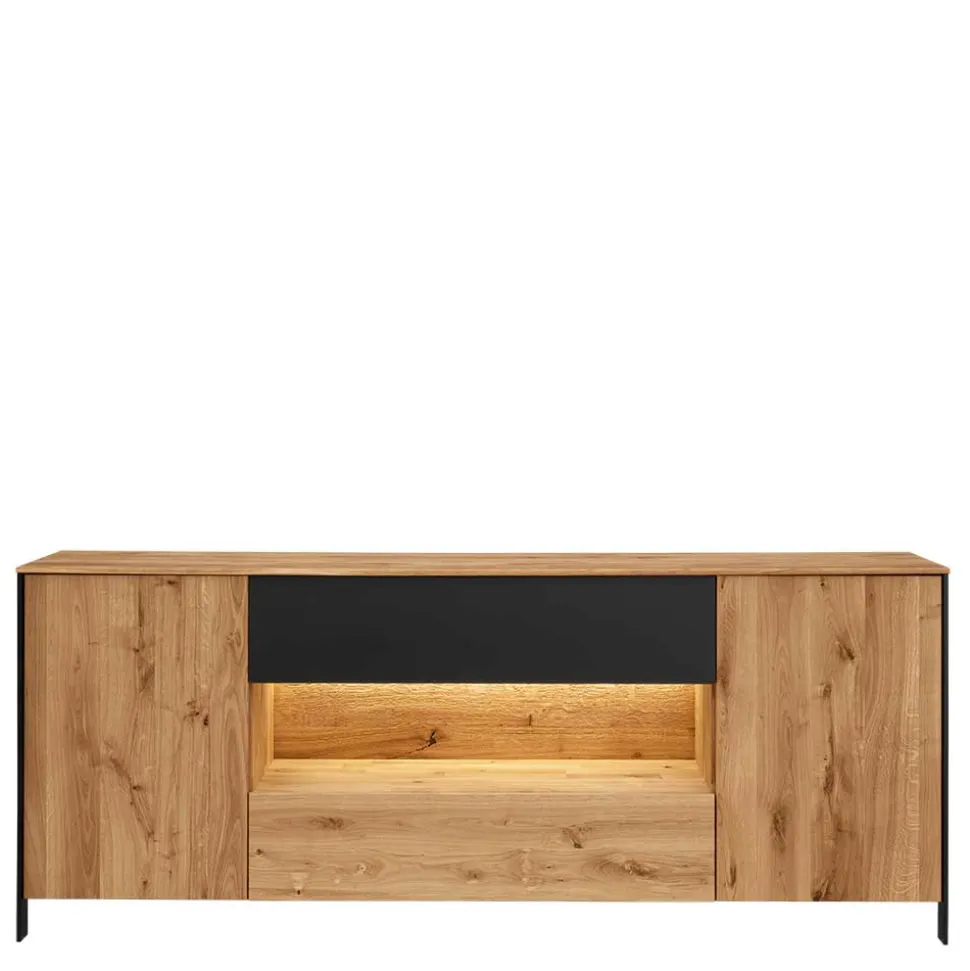 - Hervorragendes Sideboard in Wildeichefarben und Schwarz