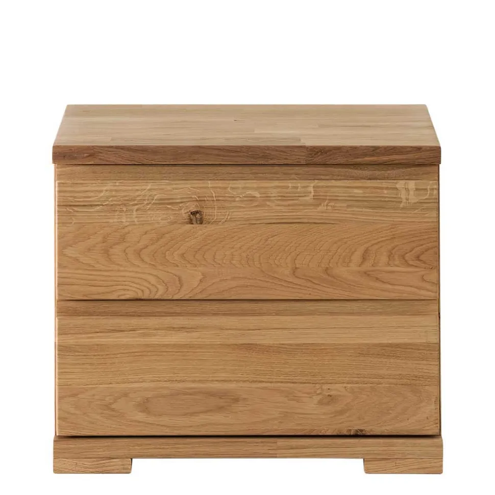 Das verwendete Wildeichenholz trägt nicht nur optisch zur Aufwertung Ihres Schlafzimmers bei, sondern verbessert dank seiner natürlichen Eigenschaften auch das Raumklima. Holz reguliert die Feuchtigkeit und sorgt so für ein angenehmes, gesundes Schlafumfeld. Die geölte Oberfläche verstärkt die natürliche Struktur des Holzes und schützt es vor Abnutzung – ohne dabei auf chemische Lacke zurückzugreifen. Dadurch bleibt die natürliche Schönheit des Holzes erhalten, und das Bett strahlt eine warme, einladende Atmosphäre aus.