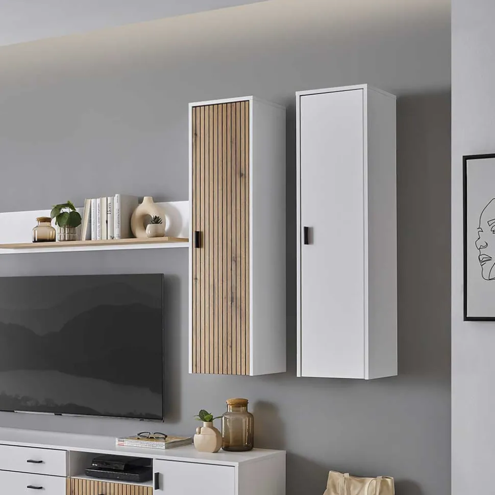 Ein Hängeschrank muss nicht nur praktisch, sondern auch ästhetisch ansprechend sein. Der Hängeschrank „Dualkos“ vereint modernes Design, hochwertige Materialien und durchdachte Funktionalität und wird so zum stilvollen Highlight in Ihrem Wohnraum. Er überzeugt mit einer zeitlosen Eleganz und lässt sich mühelos in verschiedenste Einrichtungsstile integrieren. Die schlanken Maße von 33 cm Breite, 120 cm Höhe und 30 cm Tiefe machen ihn vielseitig einsetzbar, sei es im Wohnzimmer, Badezimmer oder Flur.