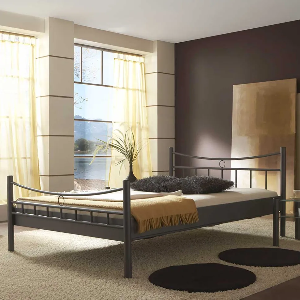 „Rosanna“ besticht durch ein modernes Design, das Eleganz und Funktionalität nahtlos miteinander verbindet. Das Bettgestell aus Metall, pulverbeschichtet in einem tiefen Dunkelgrau, verspricht nicht nur eine kratzfeste Oberfläche, sondern setzt auch ein markantes visuelles Statement in Ihrem Schlafraum. Die erstklassige Qualität und sorgfältige Verarbeitung garantieren eine lange Lebensdauer und machen „Rosanna“ zum Mittelpunkt des Raumes.