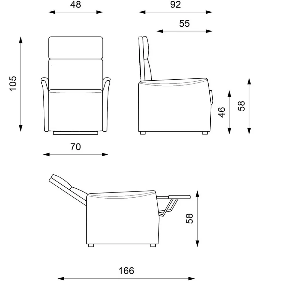 Mit einer manuellen Verstellung können Sie den Sessel durch einen seitlichen Handgriff leicht in die gewünschte Ruheposition bringen. Ausgeklappt erreicht der Sessel eine maximale Tiefe von 166 cm, perfekt für ein kurzes Nickerchen oder eine ausgedehnte Relaxzeit.