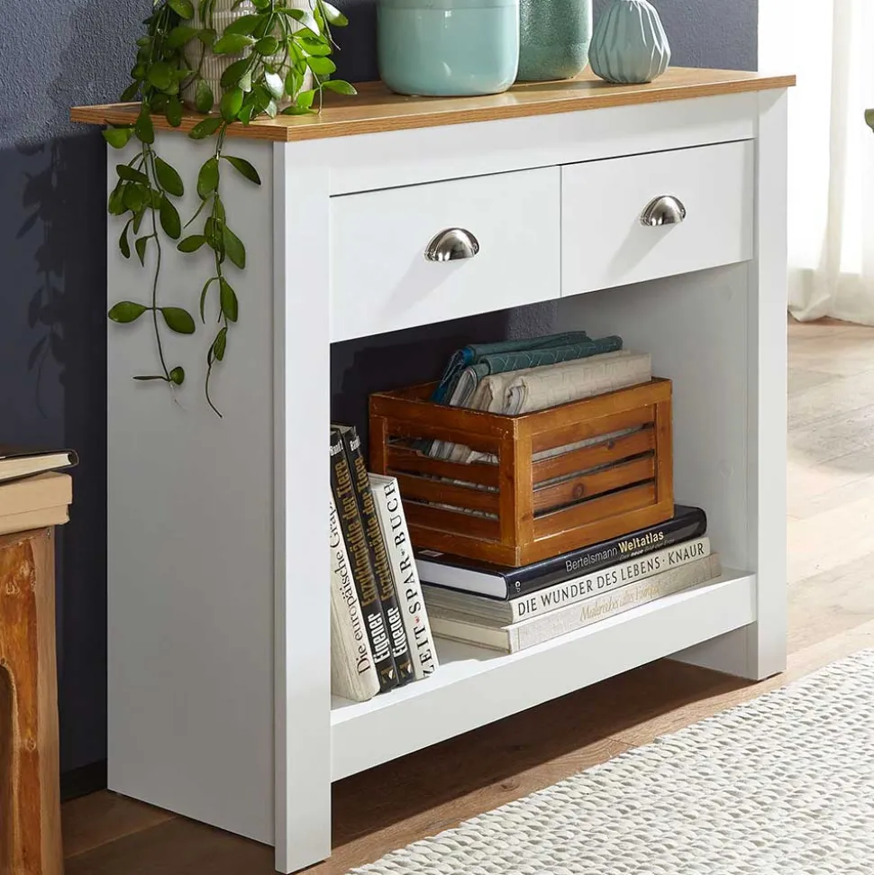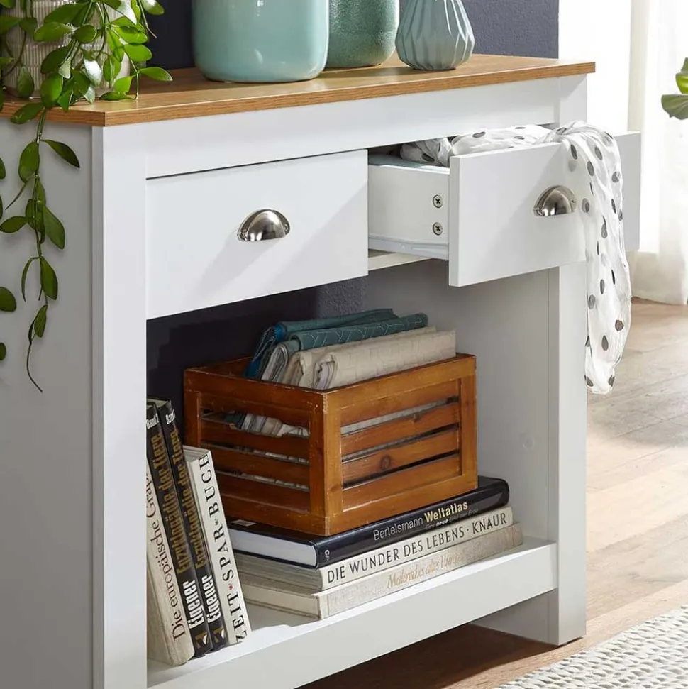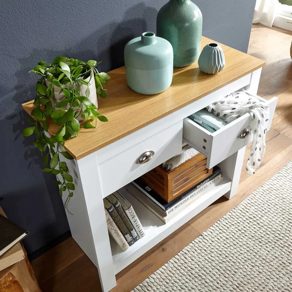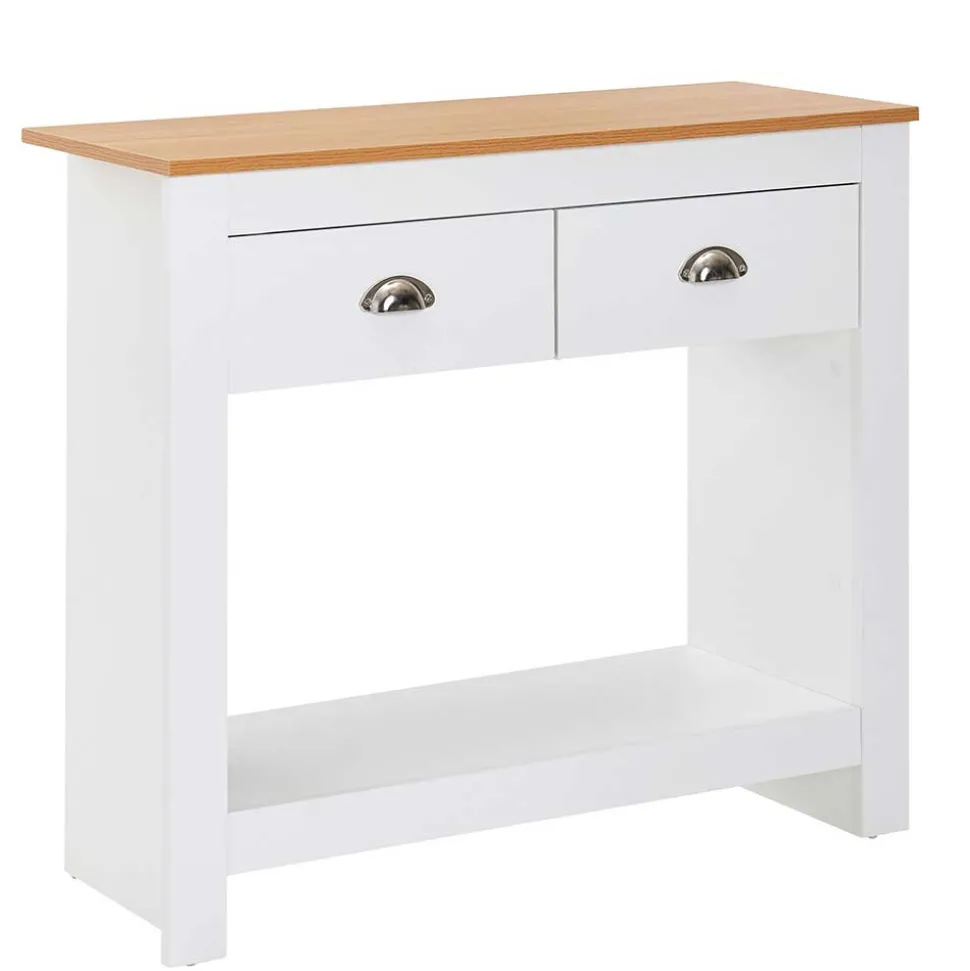 - Ansprechender Konsolentisch in Weiß und Eichefarben